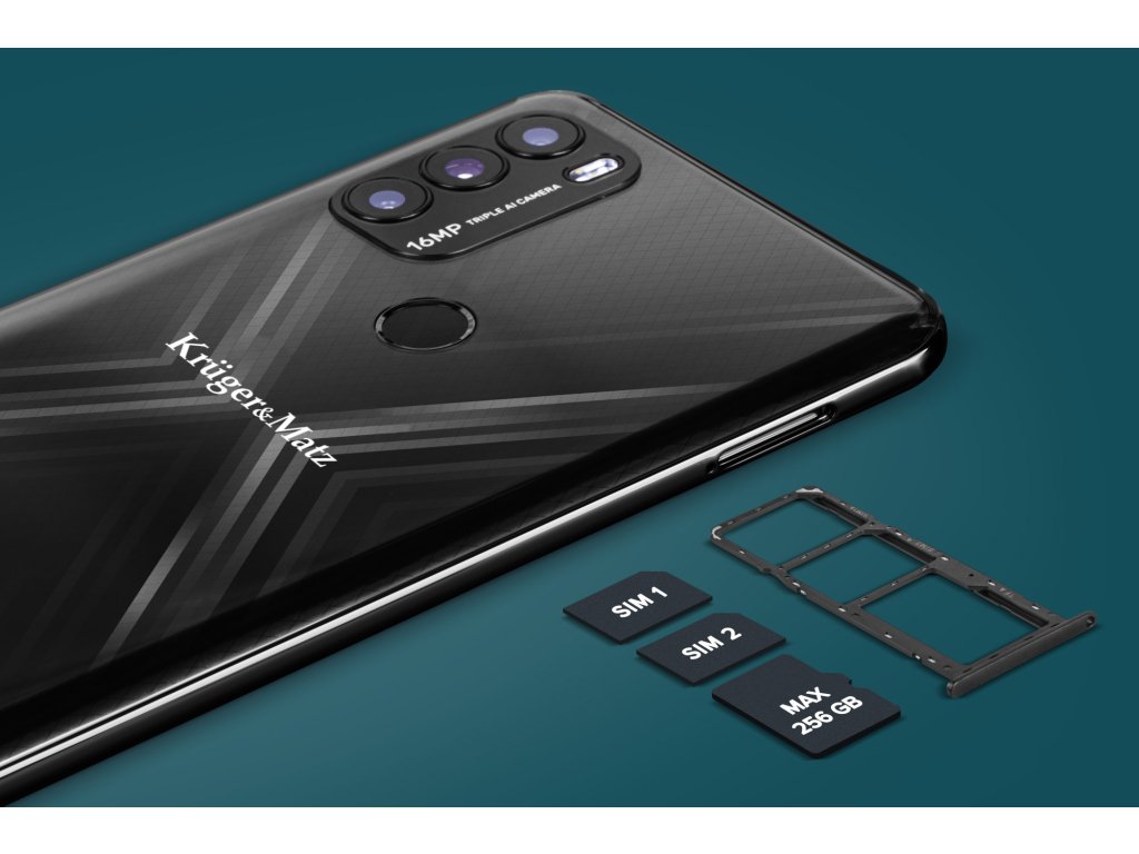 S pametnim telefonom Kruger&Matz LIVE 9 ni prostora za kompromise, saj je prostor tako za dve kartici nano SIM kot tudi za kartico micro SD. Tako vam ni treba izbirati med uporabo dveh številk ali razširitvijo pomnilnika telefona.