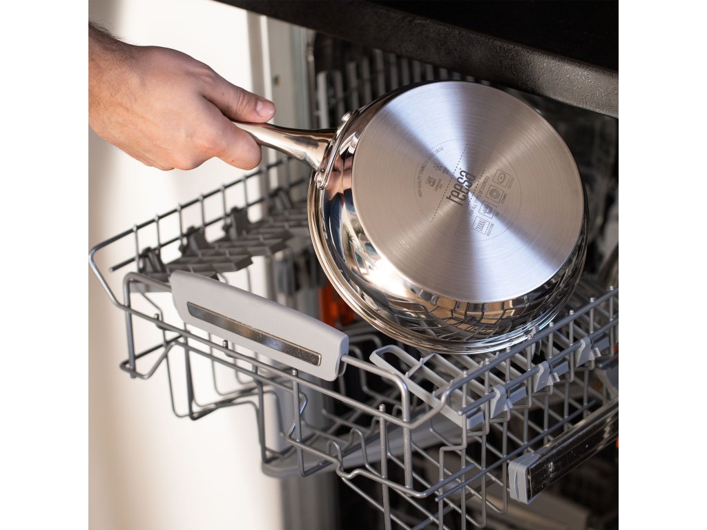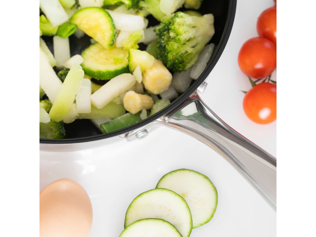Táto stredne veľká panvica je vyrobená z prvotriednej nehrdzavejúcej ocele 18/10, čo znamená, že jej zloženie obsahuje 18 % chrómu a 10 % niklu. Ten zaručuje vynikajúce antikorózne vlastnosti a trvanlivosť, odolnosť voči poškriabaniu, poškodeniu a teplu. Na druhej strane prítomnosť niklu prispieva k estetickému vzhľadu výrobku, pretože panvici dodáva svetlejšiu farbu a lesk.