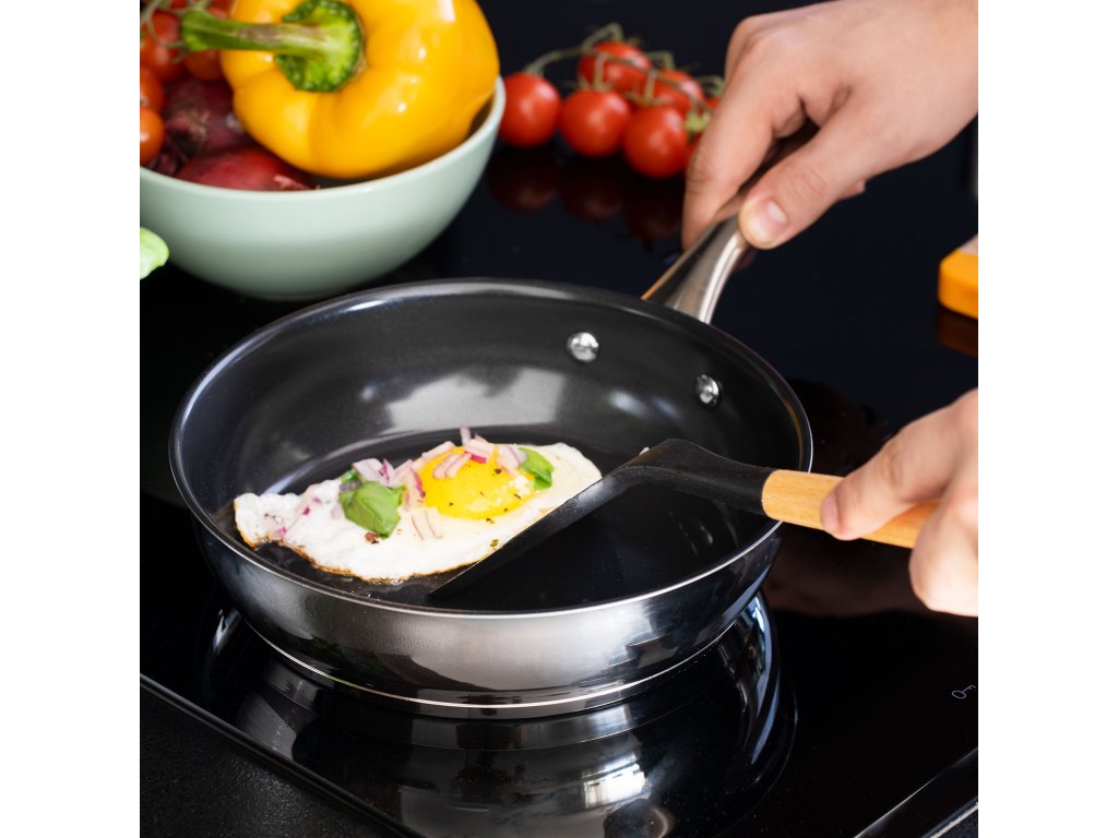 Bezpečnosť panvice Teesa zaisťuje ergonomicky navrhnutá nitovaná rukoväť, ktorá sa nezahrieva. K pohodlnému používaniu prispieva nepriľnavý keramický povrch, ako aj hrubé viacvrstvové dno, ktoré zabezpečuje rovnomerné rozloženie tepla na efektívne vyprážanie. Vďaka svojmu dizajnu je panvica vhodná na použitie na všetkých typoch sporákov: plynových, elektrických, sklokeramických a indukčných.