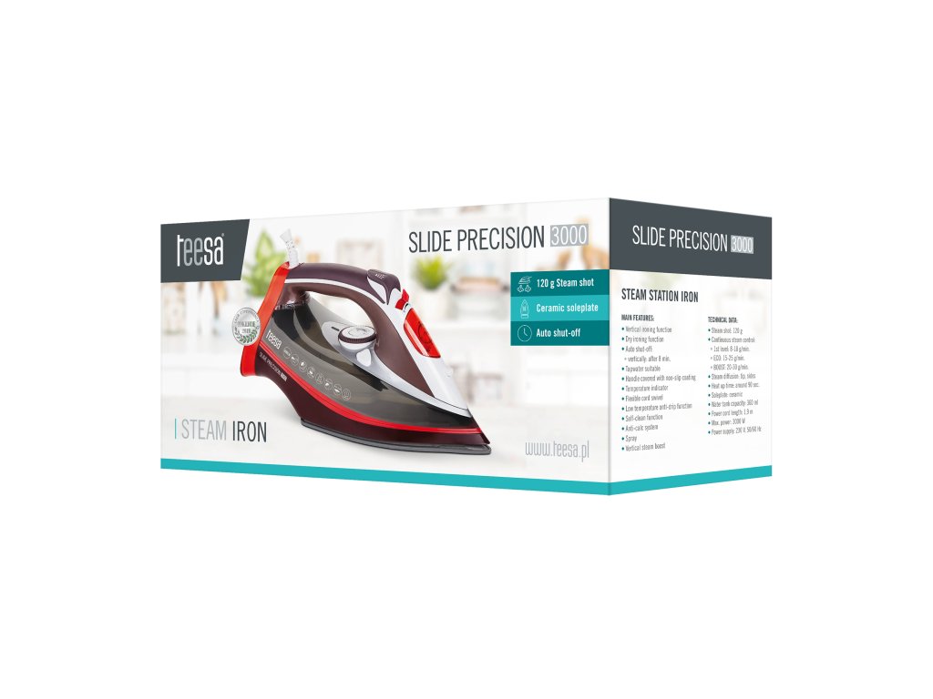 Izdelki znamke Teesa so znani po skrbnosti za varnost. Enako velja za likalnik Slide Precision 3000, ki je opremljen s funkcijo samodejnega izklopa. Ne boste se več bali, da bi pozabili izklopiti likalnik.