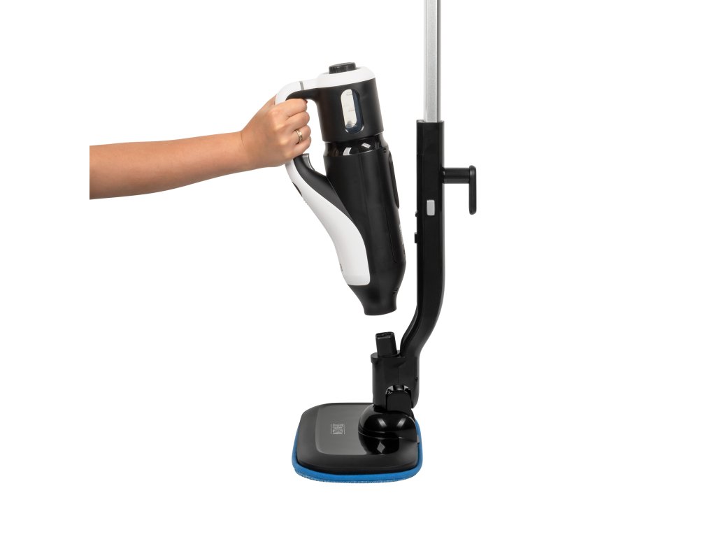 Parni čistilec Steam Clean je zasnovan tako, da vam zagotavlja maksimalno udobje. Možnost obračanja in spreminjanja naklona zagotavlja odlično ergonomijo uporabe, kar omogoča enostavno manevriranje. Zdaj lahko brez težav očistite vse težko dostopne površine, npr. tla pod mizo ali komodo.