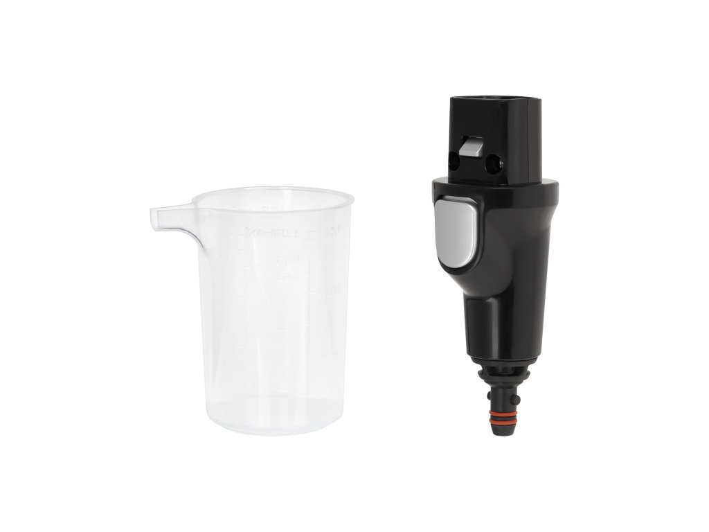 V kompletu: 2x krpa za čiščenje, nastavek za preproge, merilna posoda, adapter, okrogla ščetka, nastavek za fuge, ozki nastavek, strgalo