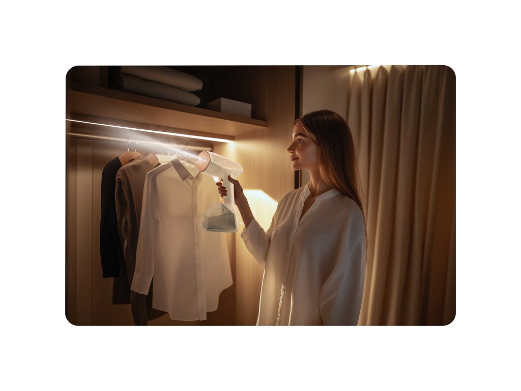- Vklopite ga v električno omrežje in počakajte le 10 sekund, da boste lahko svoja oblačila v trenutku zlikali, posušili in razkužili.