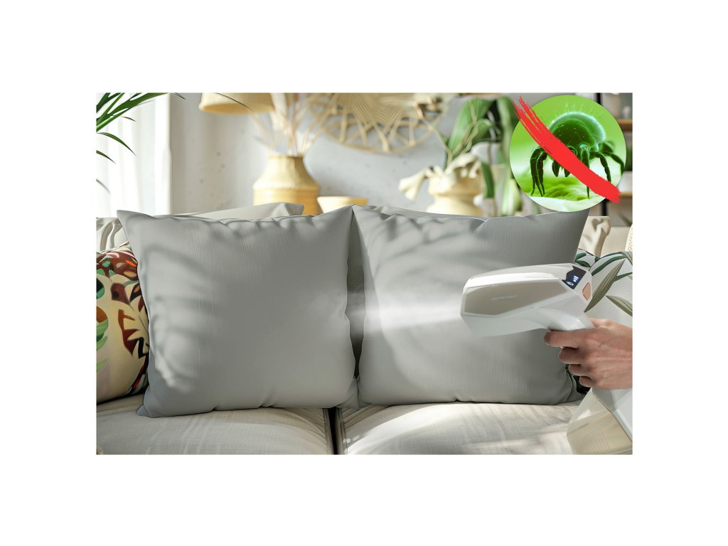 - Zahvaljujoč visoki temperaturi in močnemu izhodu pare se 100% učinkovito znebite pršic in škodljivih mikrobov iz oblazinjenja in pohištva.