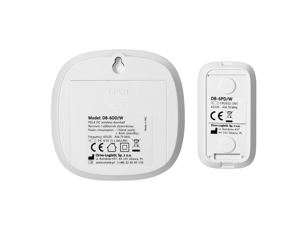 Brezžični zvonec PELA na baterije v beli barvi. To je estetska in elegantna naprava, ki se zahvaljujoč učnemu sistemu lahko razširi z dodatnimi oddajniki, ki jih namestimo na več vhodih, kar omogoča udobje v vsakdanjem življenju.Izdelek z enostavnim delovanjem - ni potrebna žična inštalacija. Oddajnik preprosto postavite pri vratih ali vratih in sprejemnik kjerkoli v hiši (doseg do 300 m na odprtem prostoru).