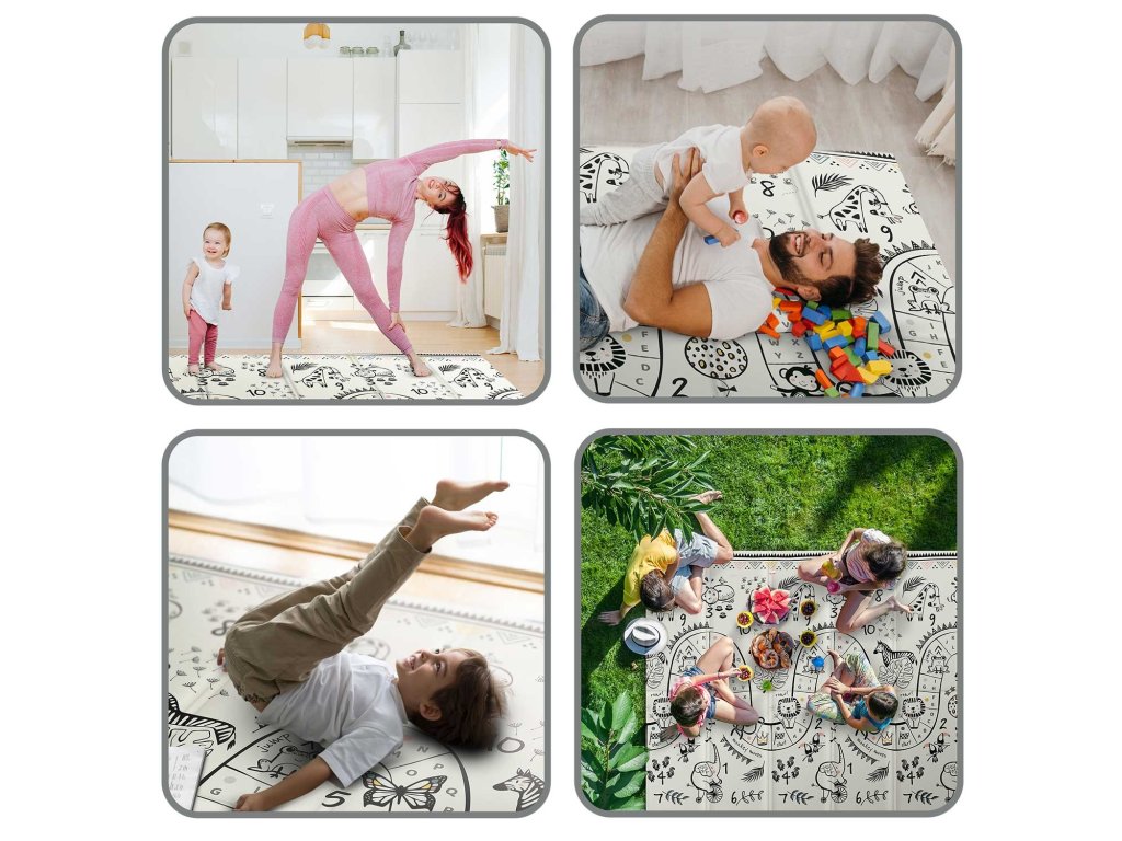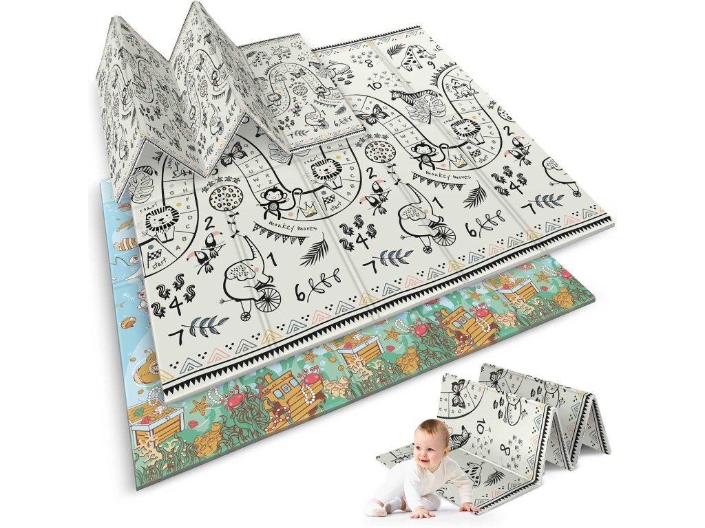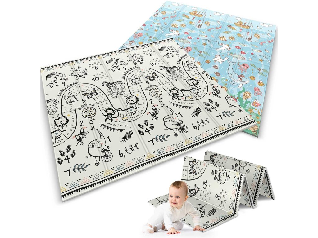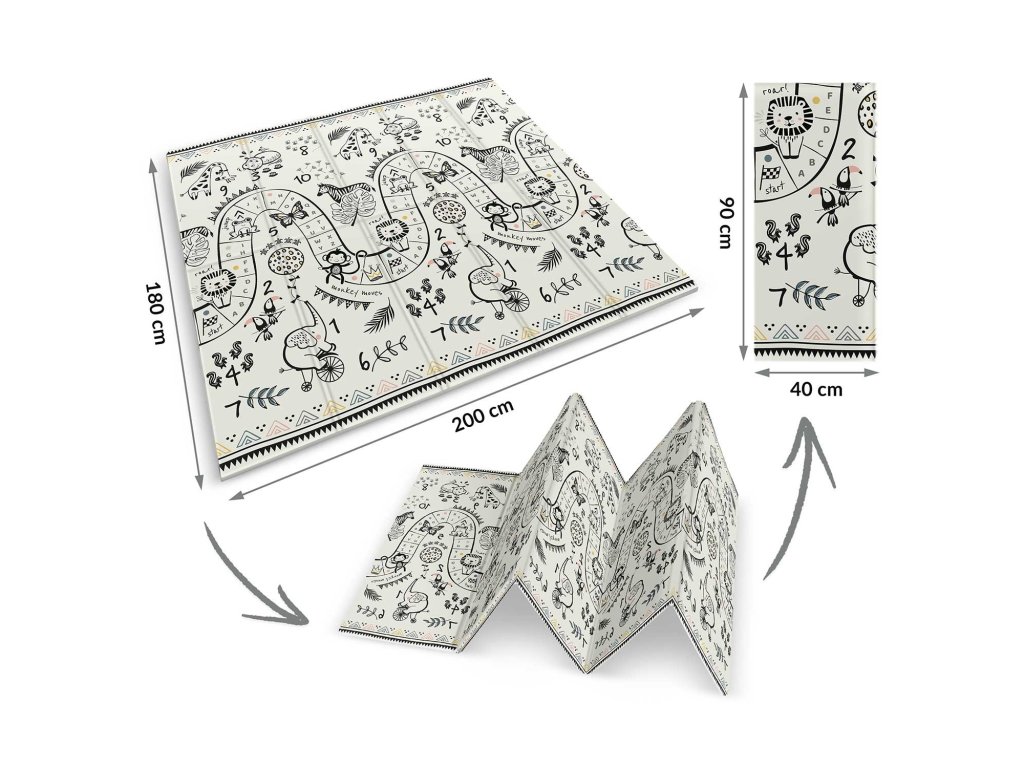 Ta edinstvena velika zložljiva podloga z dimenzijami 200 x 180 cm ima veliko praktičnih uporab. Otroku bo zagotovila udobje pri igranju in učenju plazenja!