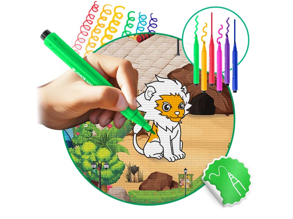 Neomejena zabava - večkrat uporabna, pralna in set vsebuje BREZPLAČNO set svinčnikov, ki dolgo trajajo. Ko se iztrošijo, jih lahko preprosto zamenjate z novimi, običajnimi svinčniki - podloga ne zahteva posebnih svinčnikov.