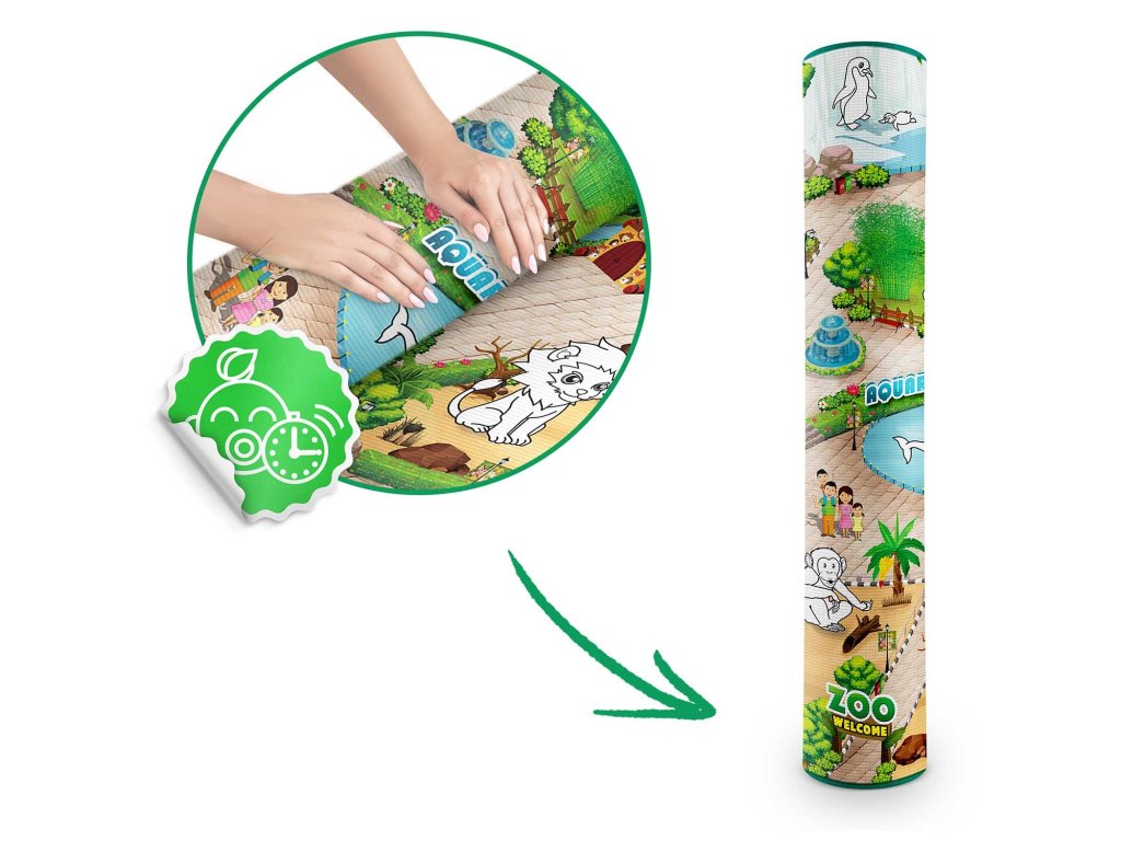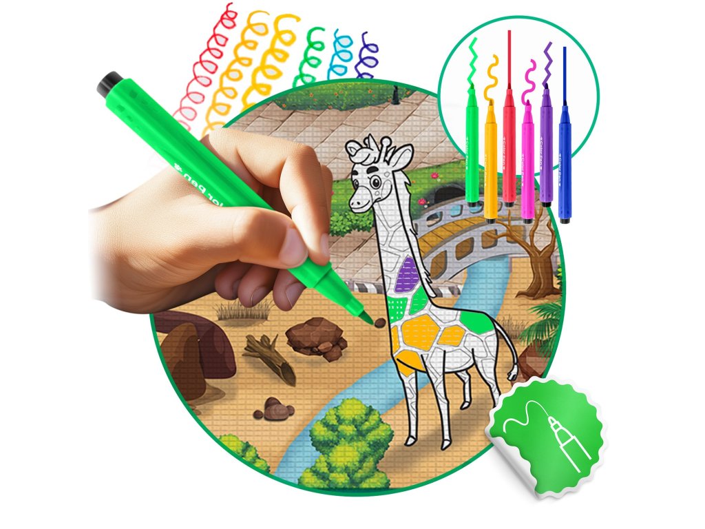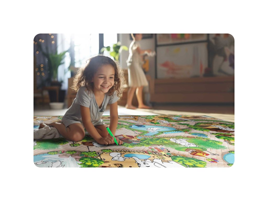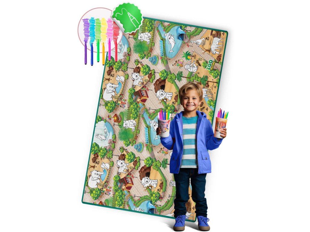 ? Neprekinjena zabava — večkratna, pralna, v kompletu boste našli GRATIS komplet flomastrov, ki bodo zdržali dolgo. Ko se izrabijo, jih brez težav nadomestite z novimi, navadnimi flomastri — podloga ne zahteva namenskih flomastrov.