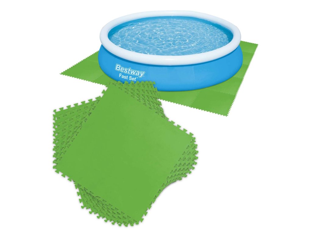 Želite zaščititi svoj bazen pred obrabo Bestway je ustvaril posebno podlogo, ki jo lahko sestavite kot puzzle! V setu boste našli 9 delov, vsak z dimenzijami 78 cm x 78 cm. Sami se odločite, kako jih sestaviti, da se bodo prilegali pod vaš rezervoar. Podloga ima tudi druge uporabe – tako lahko zaščitite otroško igrišče. Samo sestavljanje je odlična zabava!