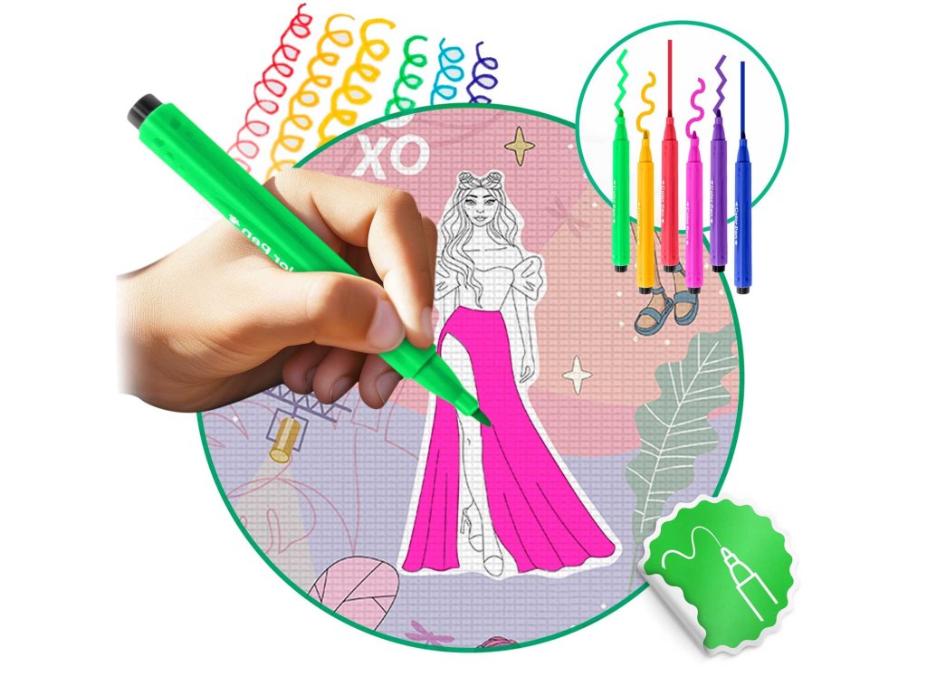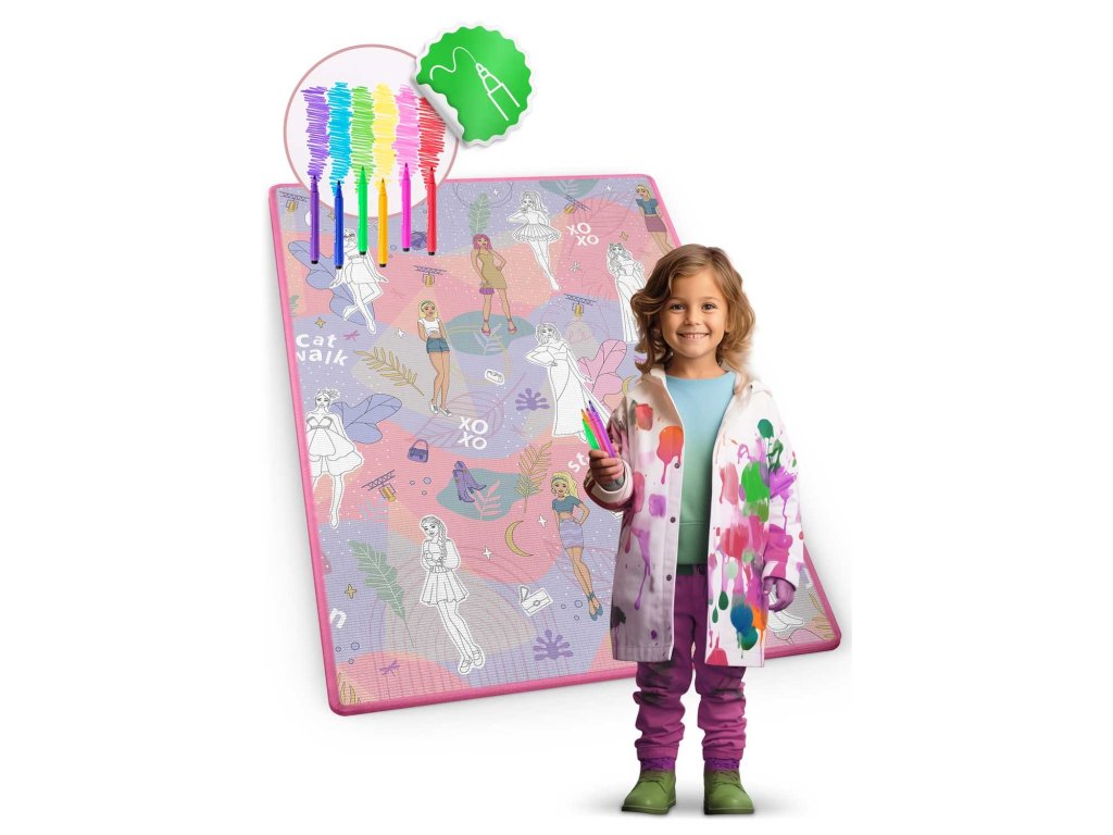 Neomejena zabava - večkrat uporabna, pralna in set vsebuje BREZPLAČNO set flomastrov, ki dolgo trajajo. Ko se izrabijo, jih enostavno zamenjate z novimi, običajnimi flomastri - podloga ne zahteva posebnih flomastrov.
