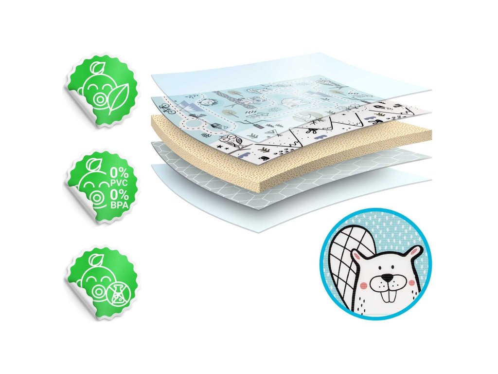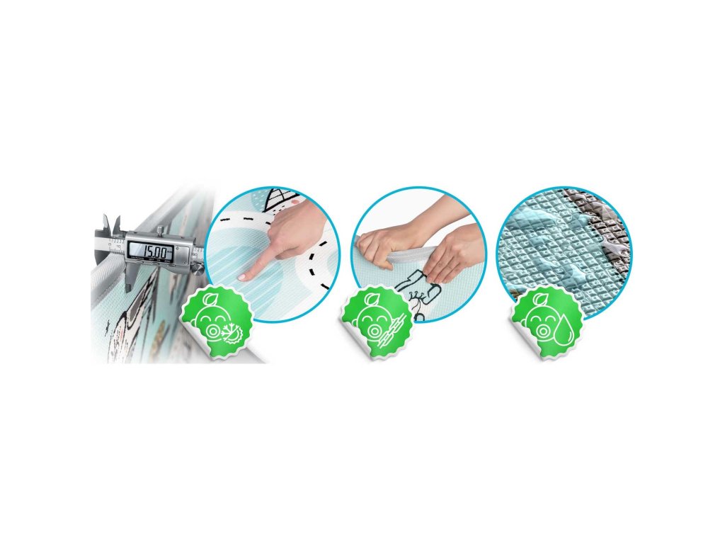 Izdelana iz visokokakovostne XPE pene brez vonja, varna za vašega otroka. Izredno debela pena (1,5 cm! ) ublaži padce na trdo tla.