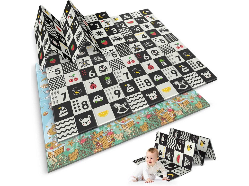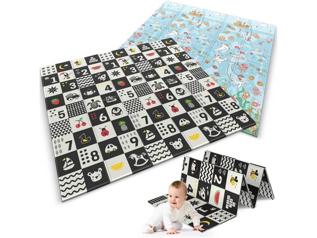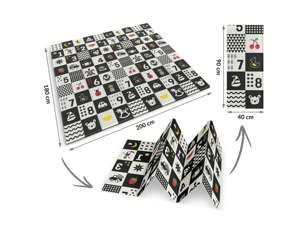 Ta edinstvena velika zložljiva podloga z dimenzijami 200 x 180 cm ima številne praktične uporabe. Nudi vašemu otroku udobje pri igri in učenju plazenja!