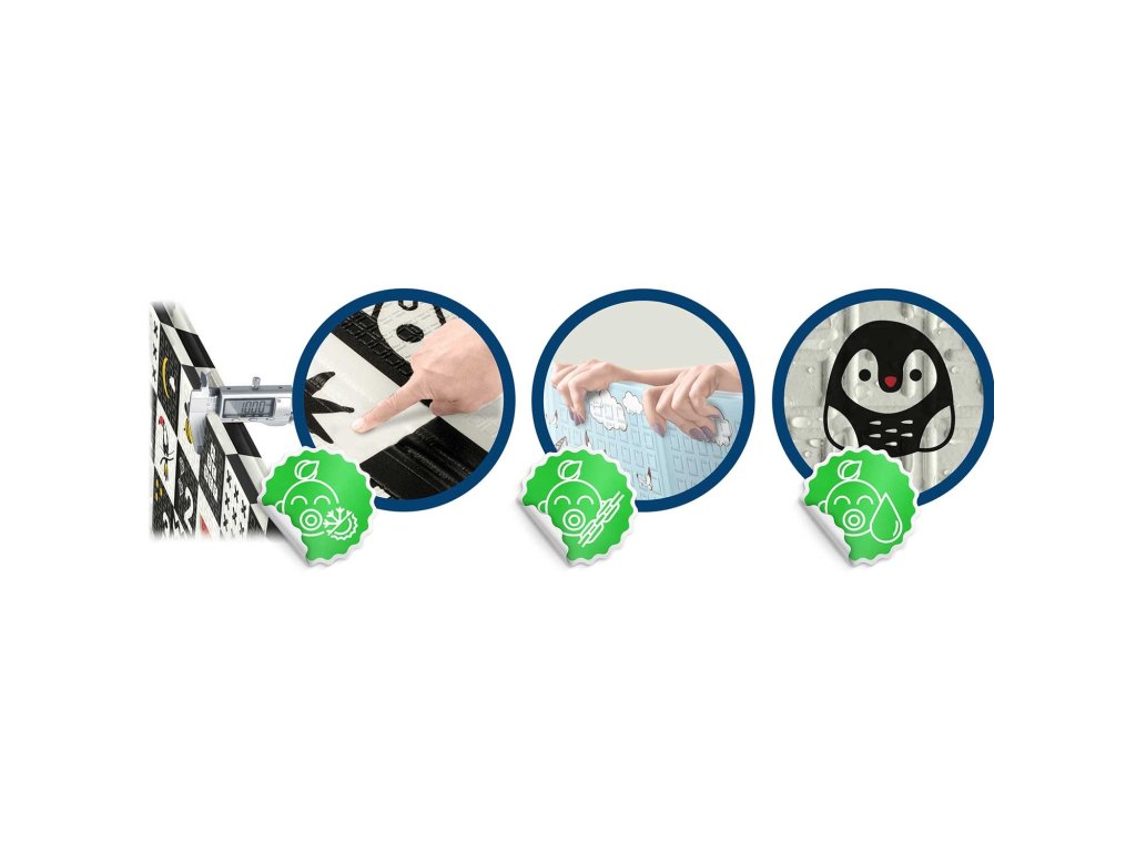 Odlično izbrane barve podpirajo otrokovo rast in zahvaljujoč posebej zasnovanim vzorcem bo podloga z otrokom dlje časa.