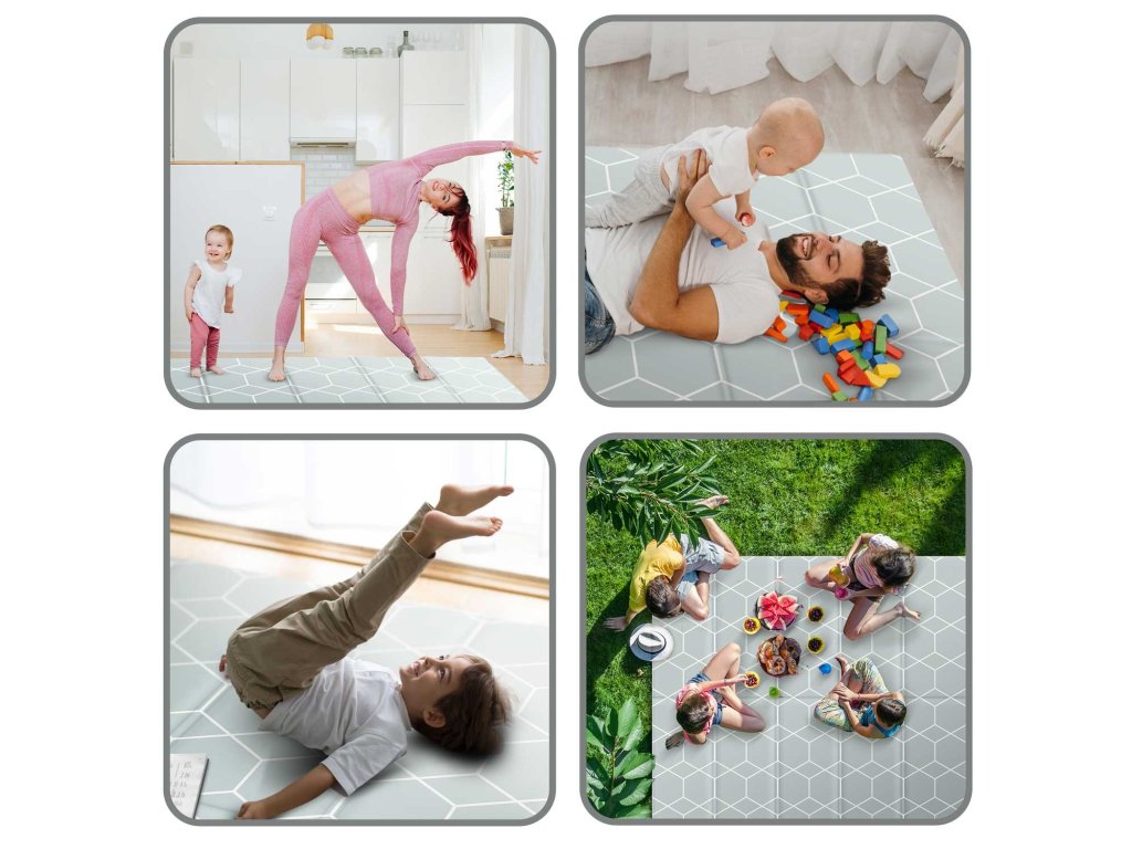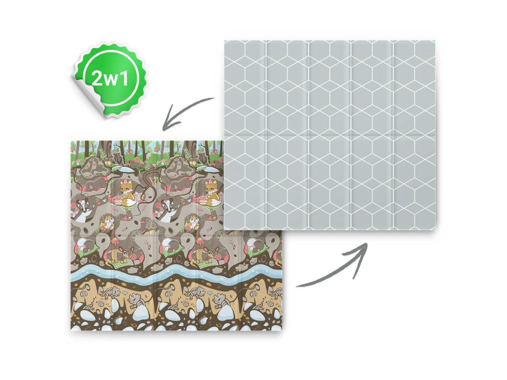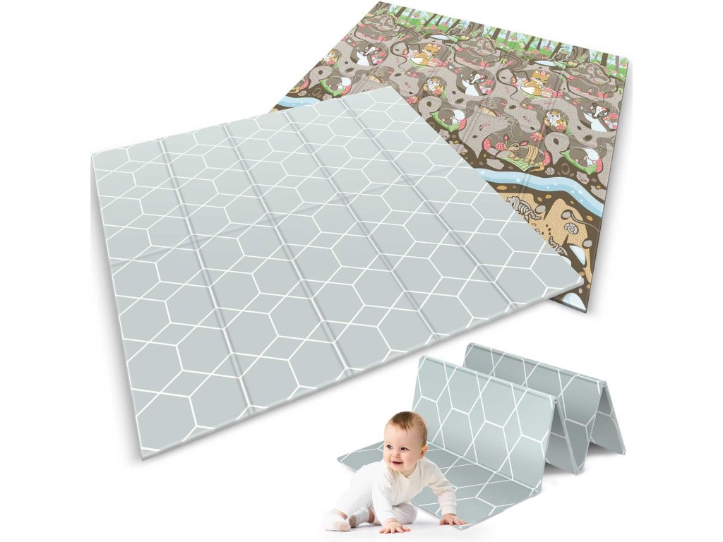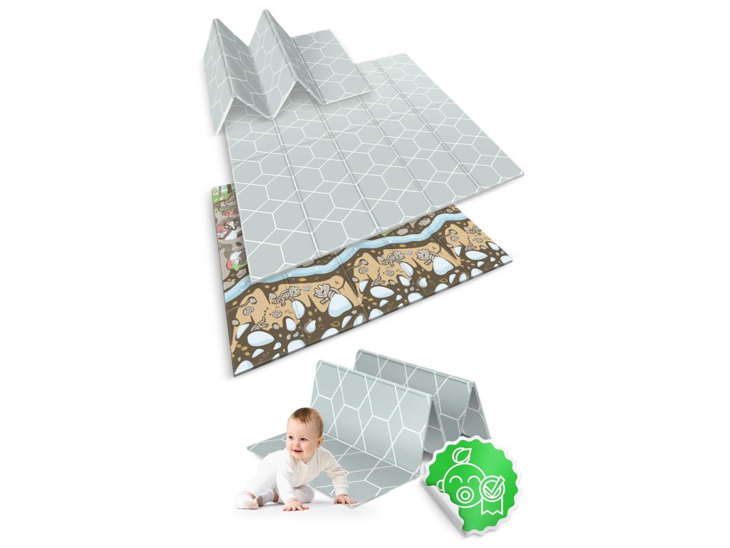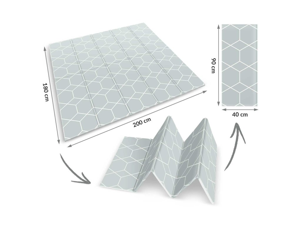 Ta edinstvena velika zložljiva podloga z dimenzijami 200 x 180 cm ima veliko praktičnih uporab. Otroku ponuja udobje pri igranju in učenju plazenja!