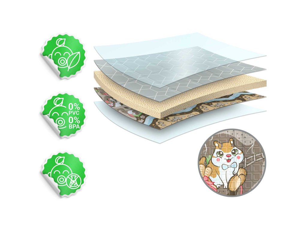 Podloge so bile razvite z oblikovalcem z Akademije likovnih umetnosti v Gdansku s specializacijo za vizualno komunikacijo in bogatimi izkušnjami z oblikovanjem izdelkov za otroke, zato ste lahko prepričani, da podloga bo izpolnila potrebe vašega otroka.