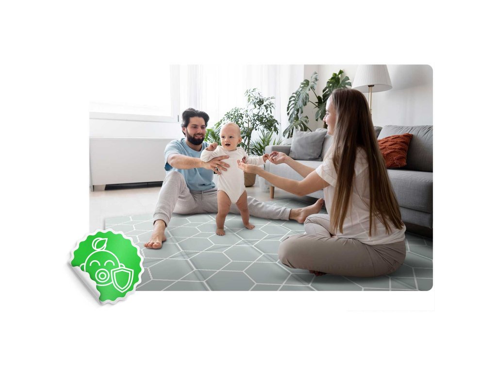 Izdelano iz visokokakovostne XPE pene brez vonja, varno za vašega otroka. Zelo debela pena (1 cm!) išča padce na trda tla.