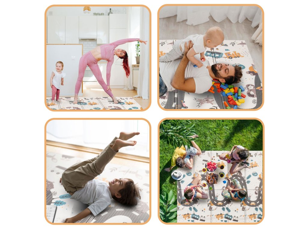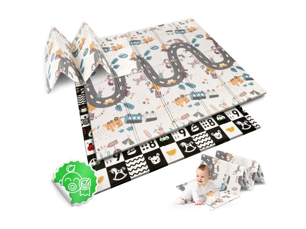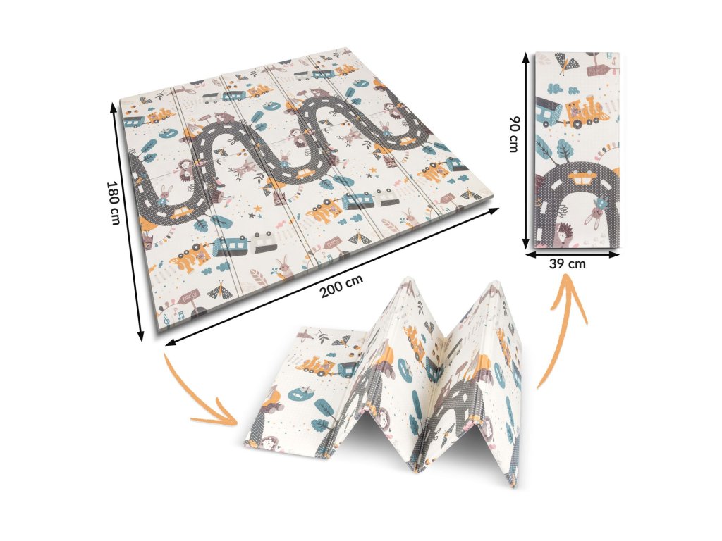 Ta edinstvena velika zložljiva podloga z dimenzijami 200x180 cm ima veliko praktičnih uporab. Vašemu otroku ponuja udobje pri igranju in učenju plazenja!