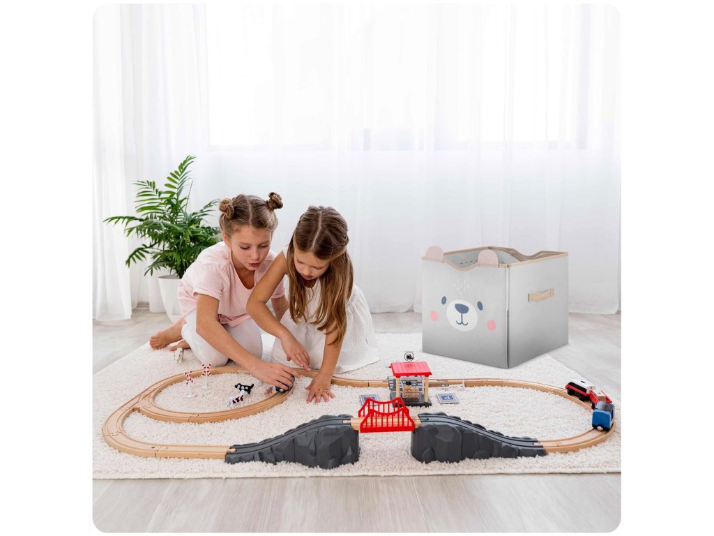 Škatla omogoča vzdrževanje reda in organizacijo prostora v otroški sobi. Zelo je praktična in dobro premišljena!
