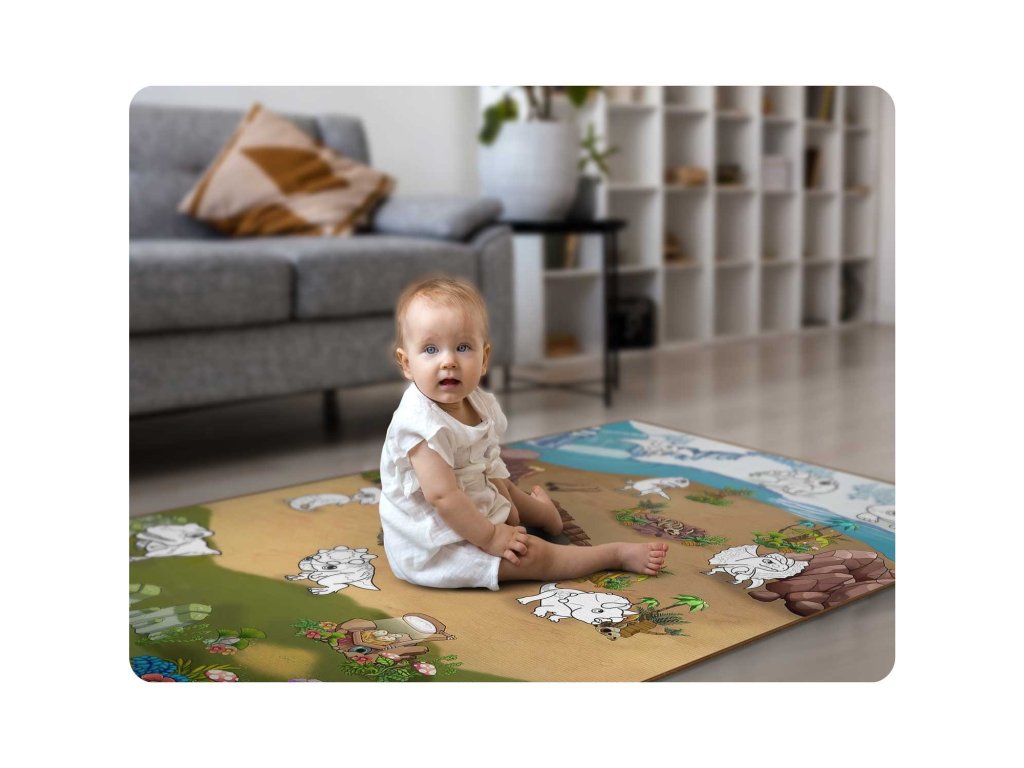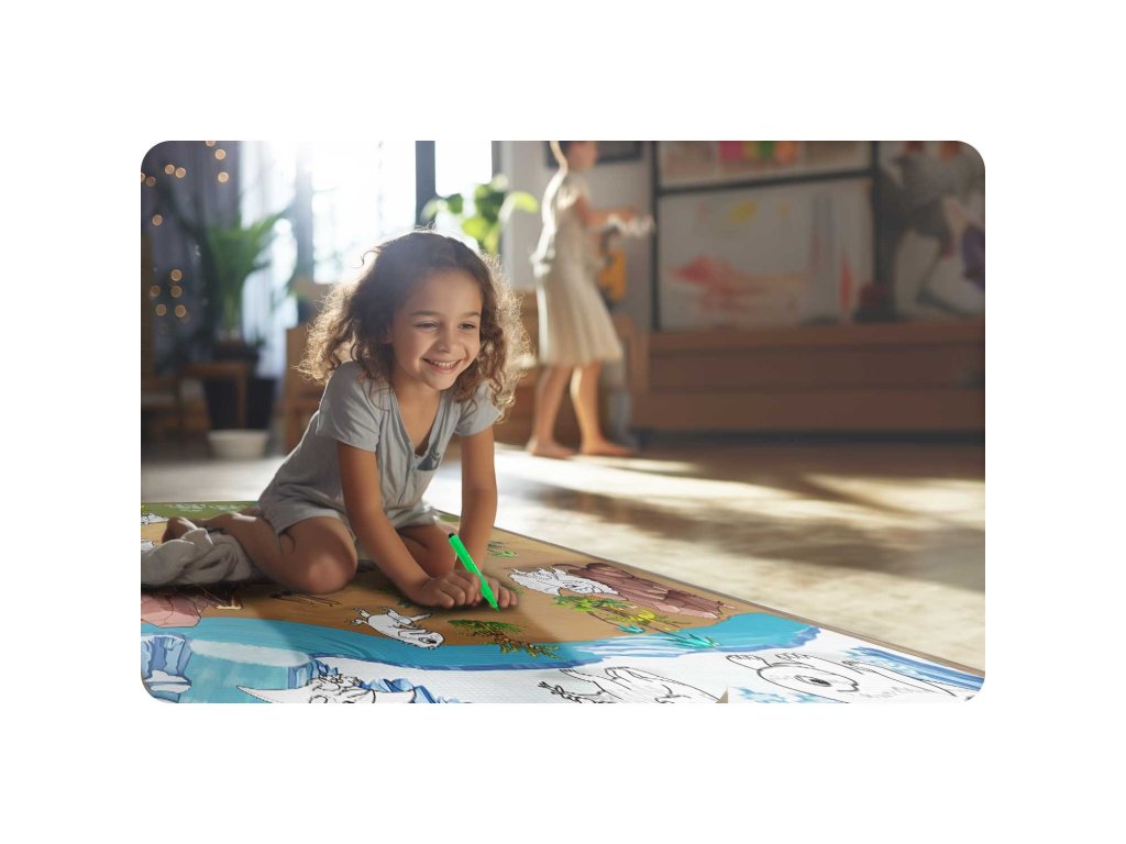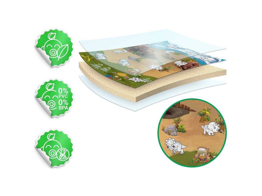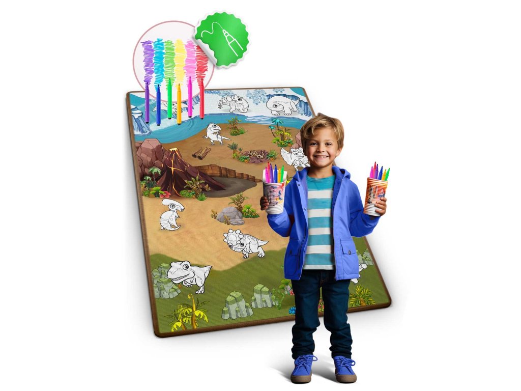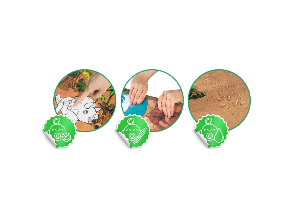 Podloga je bila izdelana s posebno tehnologijo: risbe s flomastri na njeni površini hitro sušijo. Vaš otrok bo ostal čist in srečen.
