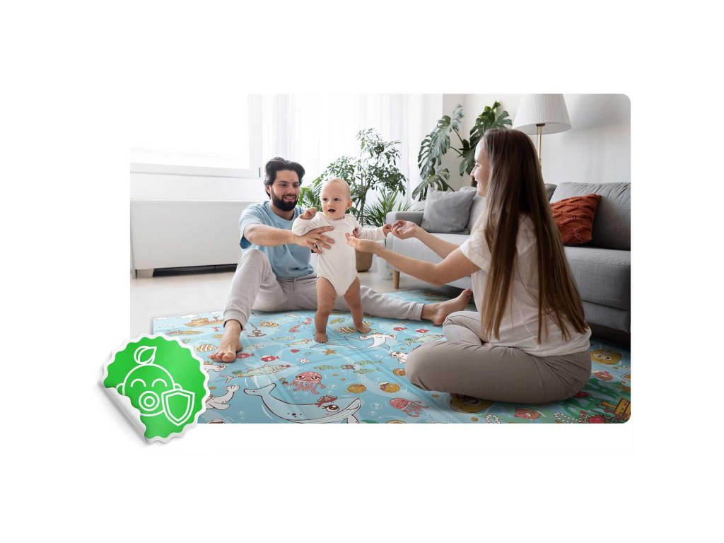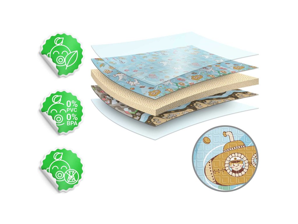 Izdelano iz visokokakovostne pene XPE brez vonja, varno za vašega otroka. Zelo debelejša pena (1 cm!) zmanjšuje padec na trdo podlago.