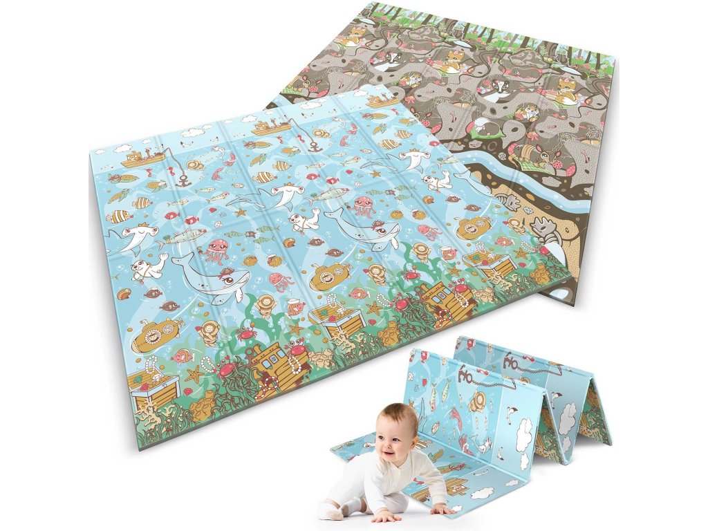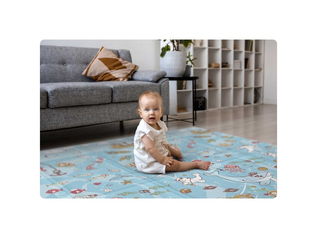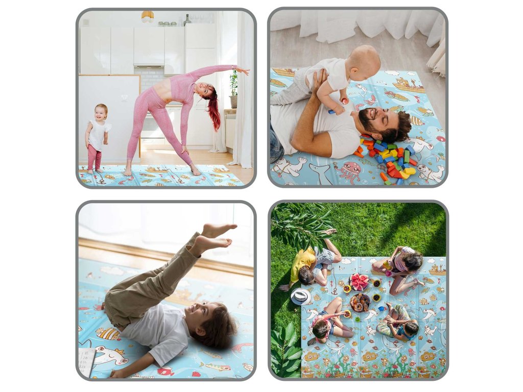 Ta edinstvena velika zložljiva podloga dimenzij 200 x 180 cm ima veliko praktičnih uporab. Nudi vašemu otroku udobje pri igri in učenju plazenja!