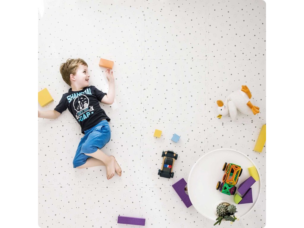 Lahko jih razporedite po površini v poljubni obliki ali ustvarite tridimenzionalno figuro, na primer hišico, kjer se lahko vaš malček skrije med igro.
