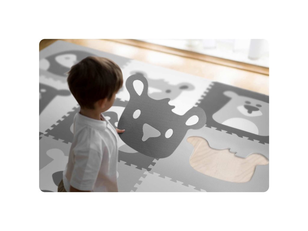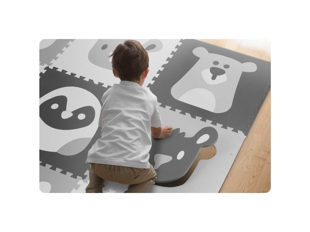 Peneča sestavljanka za tla 180x180cm 9 kosov sive živali