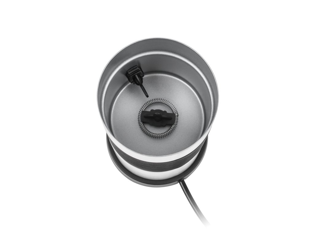 Moderen dizajn, ki je kombinacija nerjavečega jekla, katerega bistvo je notranji sloj, ki preprečuje lepljenje mleka, poskrbi, da se AROMA F30 odlično vklopi v ureditev tvoje kuhinje. Še bolj, ker lahko po končanem delu zviješ in skriješ kabel v posebnem predalčku na osnovi, s čimer ohraniš brezhibno estetiko.