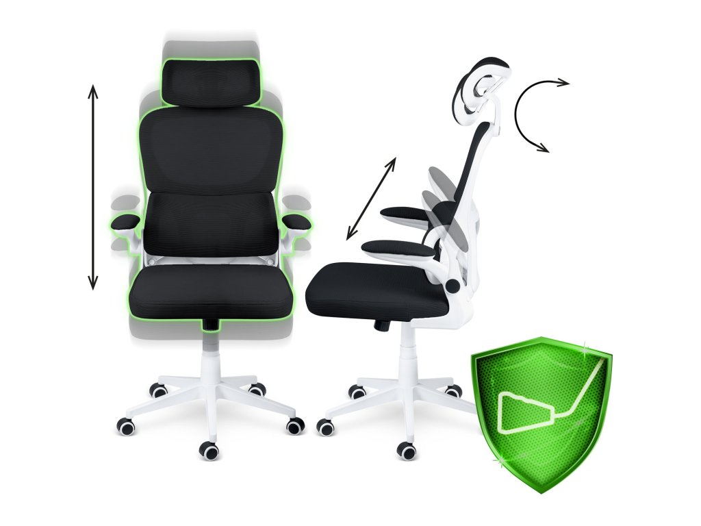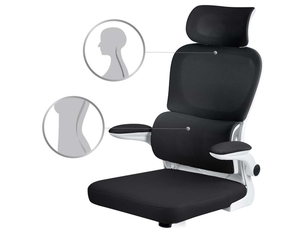Oblikovan ledveni del pomaga ohranjati ergonomsko in varno držo. Prilagodi se obliki vašega telesa in zagotavlja udobje med sedenjem.