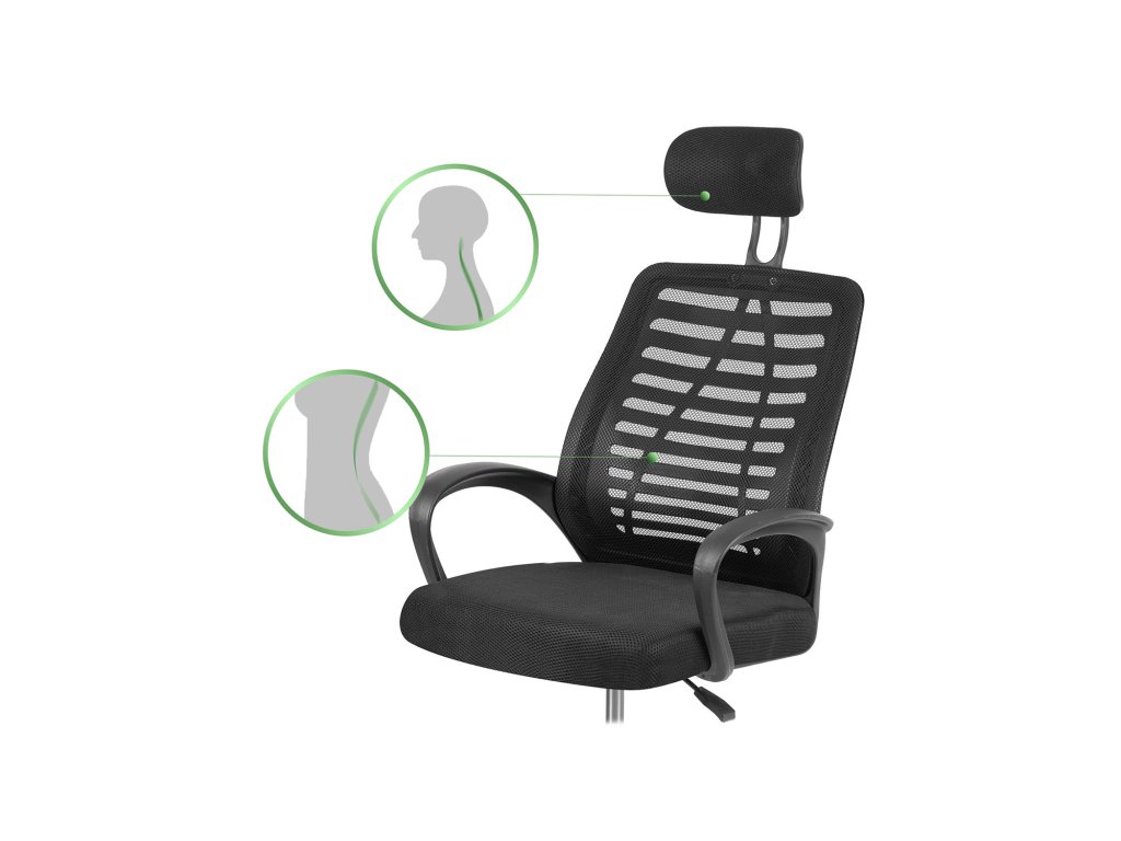 Prilagojen ledveni del pomaga ohranjati ergonomsko varno držo. Prilagaja se obliki vašega telesa in zagotavlja udobje pri sedenju.