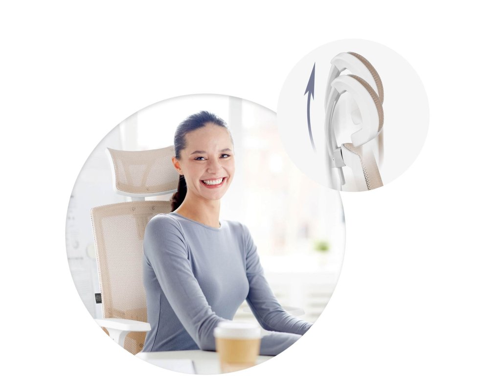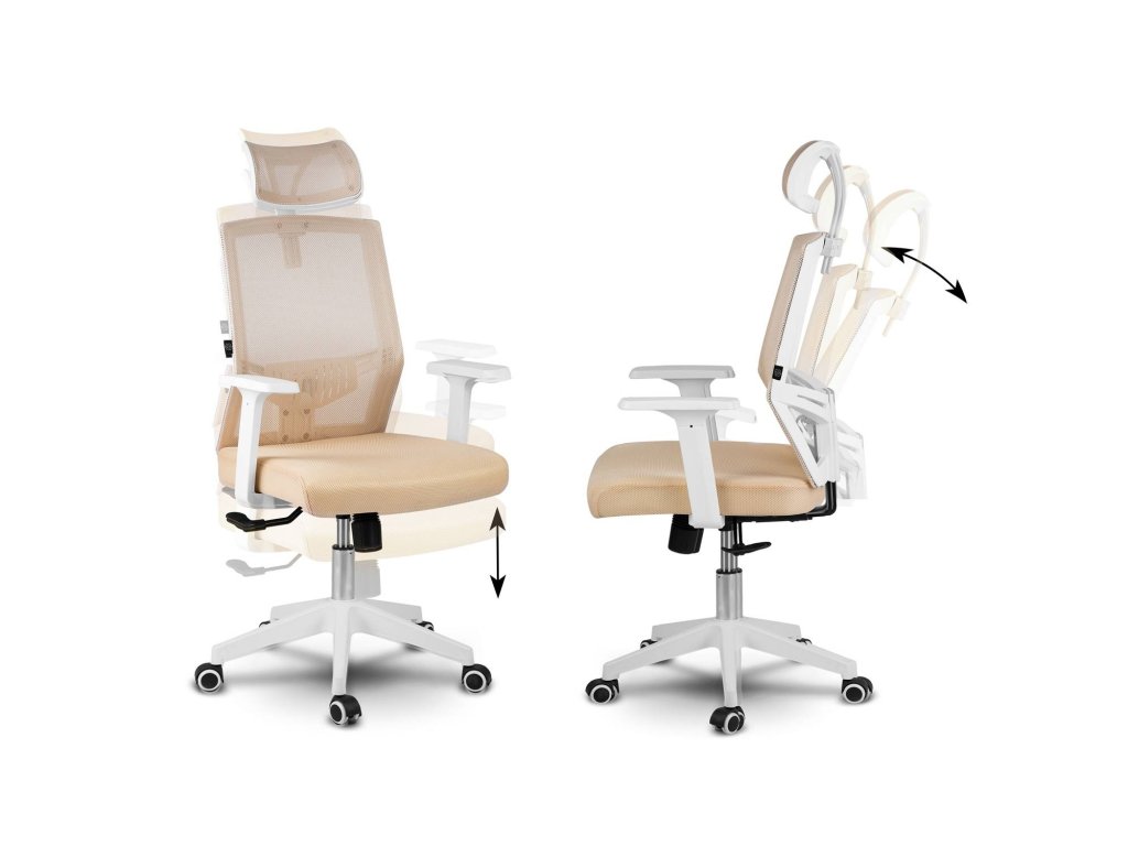 Z izjemnim čutom za detajle bo ta stol okras vsakega notranjega prostora. Naslonjalo iz trpežnega mikromrežnega materiala združuje vizualno lahkotnost z zagotovljeno trpežnostjo v enem kosu pohištva, nastavljiv vzglavnik pa omogoča prilagoditev stola višini uporabnika.