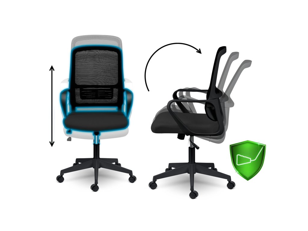 Oblikovan ledveni del pomaga ohranjati ergonomsko in varno držo. Prilagodi se obliki vašega telesa in zagotavlja udobje sedenja.