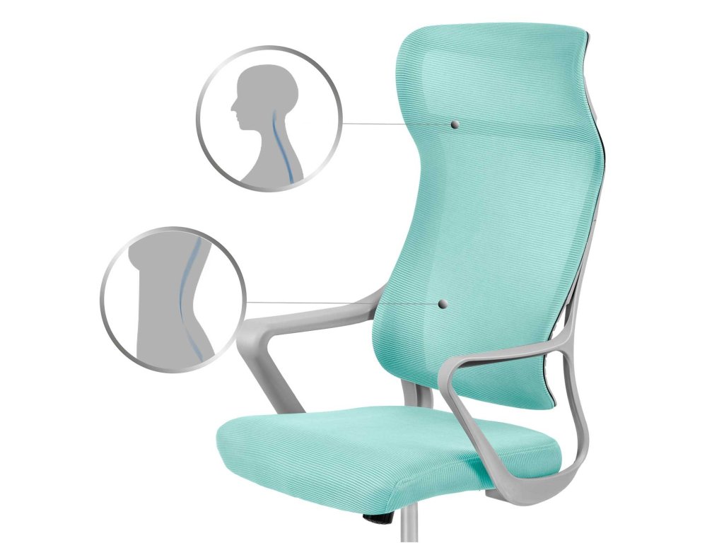 Oblikovan ledveni delpomaga ohranjatiergonomsko in varno držo.Prilagodi se obliki vašega telesa in zagotavlja udobje pri sedenju.