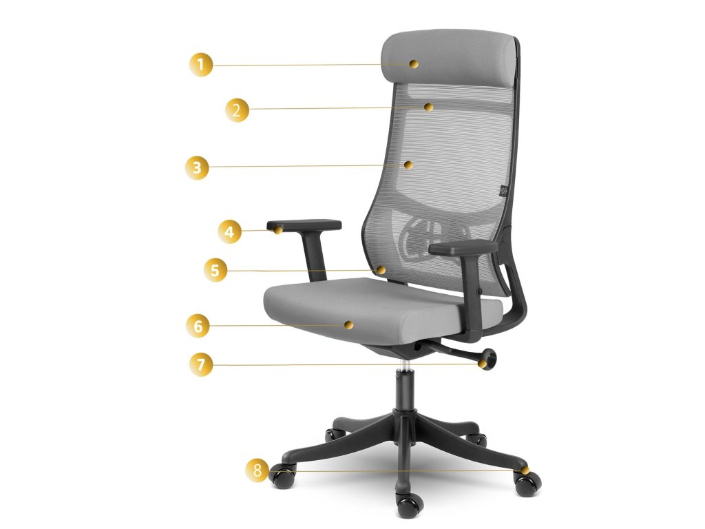 Oblikovan ledveni del pomaga ohranjati ergonomsko in varno držo. Prilagodi se obliki vašega telesa in zagotavlja udobje pri sedenju.