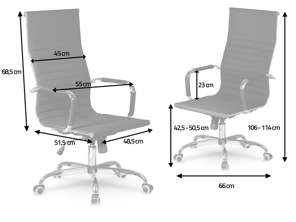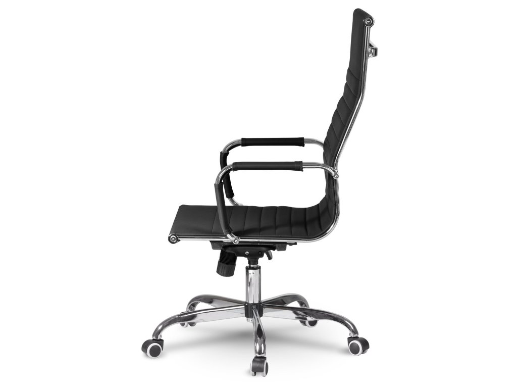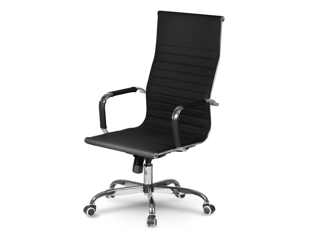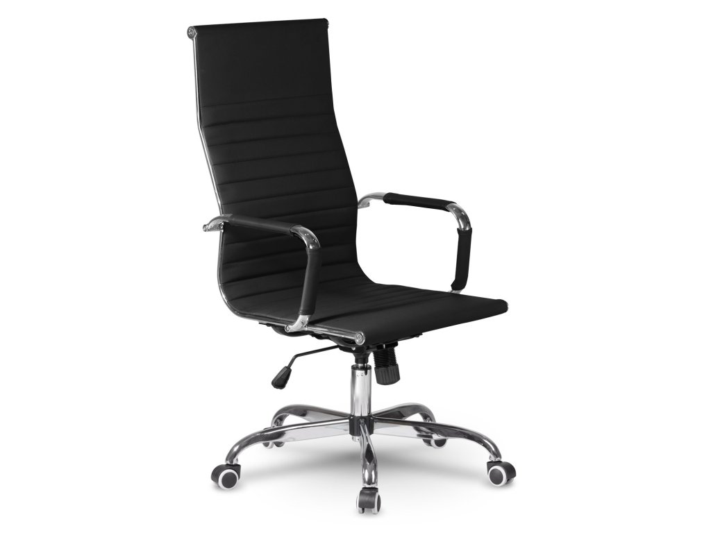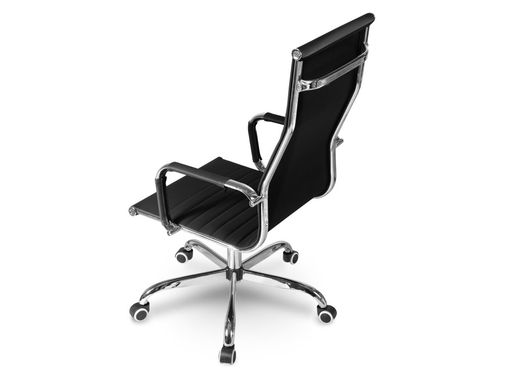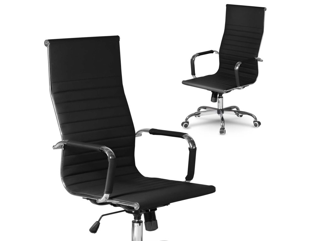 - Visok pisarniški stol s profiliranim naslonom in kromiranimi detajli.