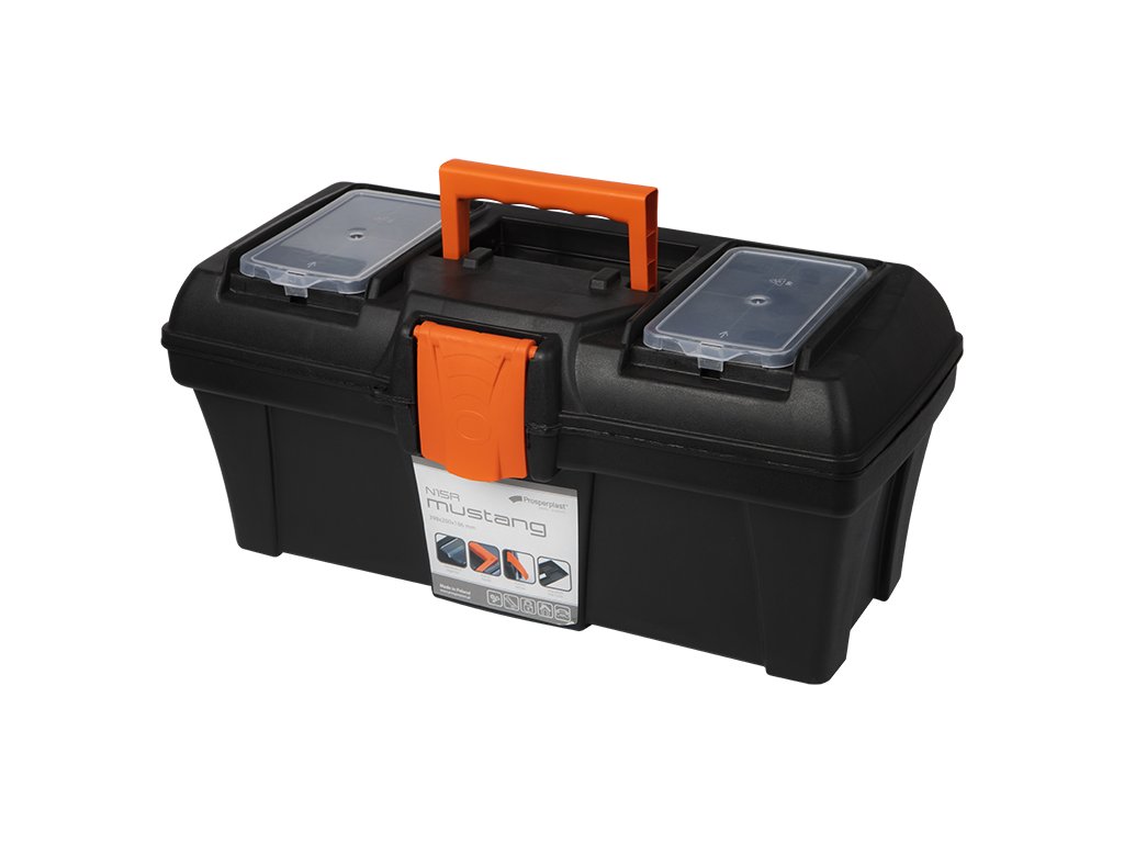 Škatla z organizatorji iz serije Mustang je idealna za majhna orodja in mojstrske pripomočke. Izdelek je opremljen tudi s praktičnim notranjim nosilcem in dvema neodvisnima organizatorjema. Udoben ročaj in varna sponka olajšata prevoz škatle z vsebino.