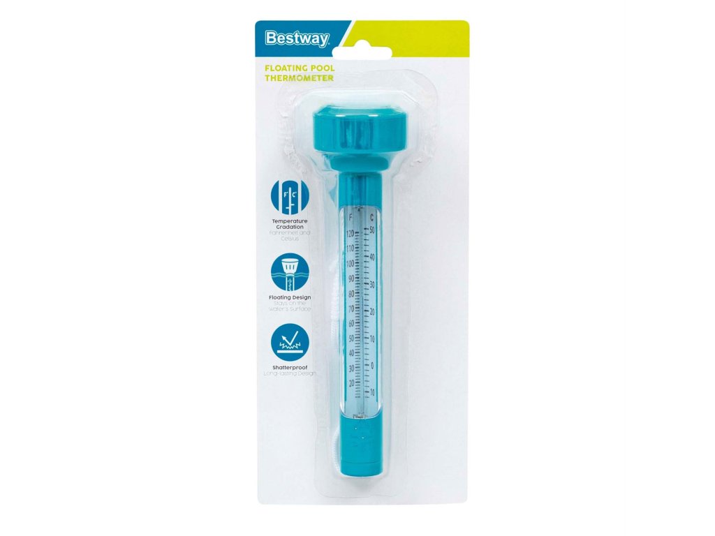 Plavajoči termometer Bestway za vrtni bazen omogoča določitev, kakšna je temperatura vode v rezervoarju. Prosto lebdeč na površju prikazuje pridobljene rezultate, tako v stopinjah Celzija kot tudi Fahrenheita. Je praktičen dodatek, ki olajša uporabo vašega bazena.