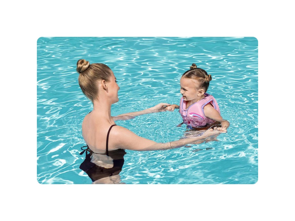 Prvi stik z vodo je lahko zahteven, zato bo pri učenju plavanja otroku pomagal jopič blagovne znamke Bestway z originalno licenco Disney
