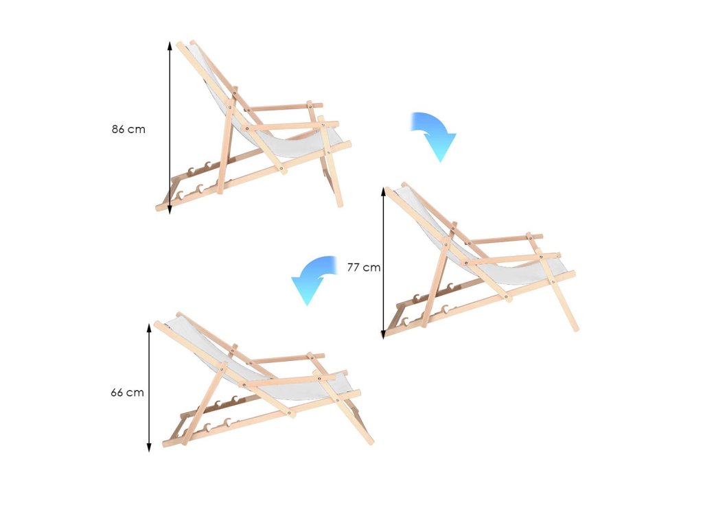 - Maximálne výšky v každej polohe: 86 cm, 77 cm, 66 cm