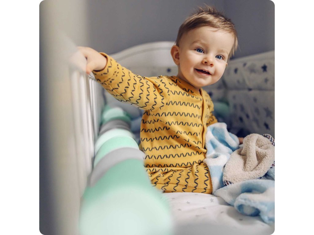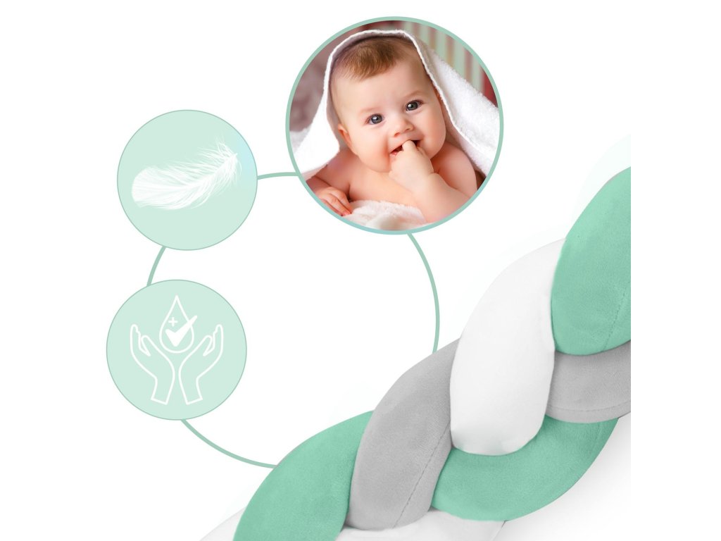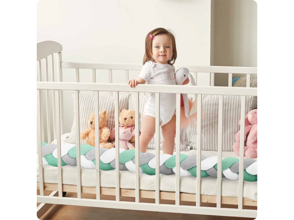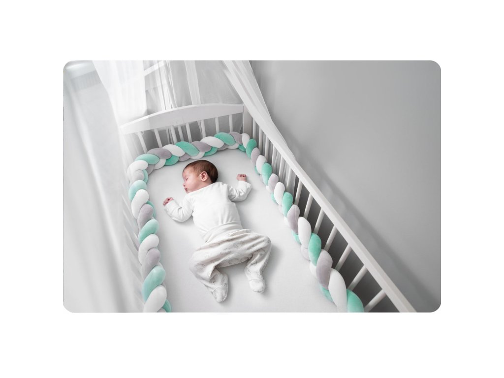 - ščiti vašega otroka pred trdimi prečkami posteljice,