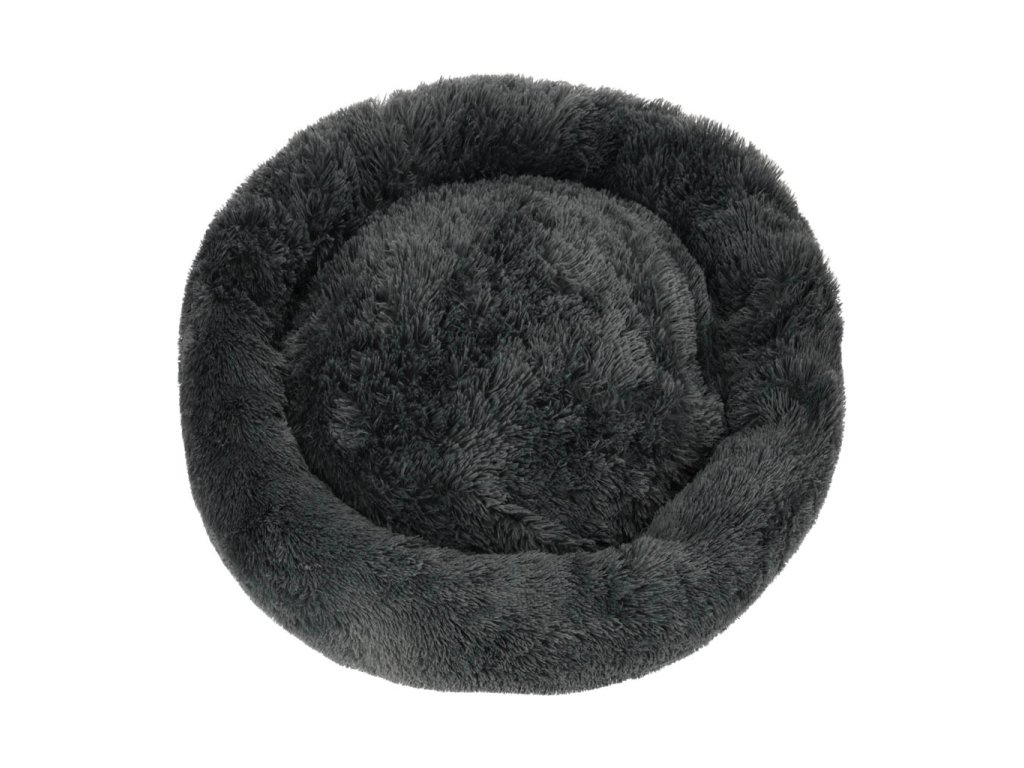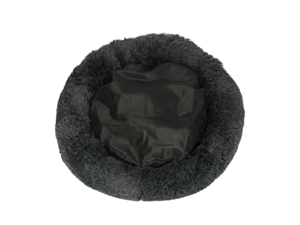 Plišasto ležišče za vašega psa ali mačko. Nudi udoben počitek - dvignjeni robovi podpirajo glavo in vrat vašega ljubljenčka. Izdelan je iz mehkega in na dotik prijetnega materiala v temno sivi barvi. Ima nedrsečo podlago, ki preprečuje premikanje ležišča.