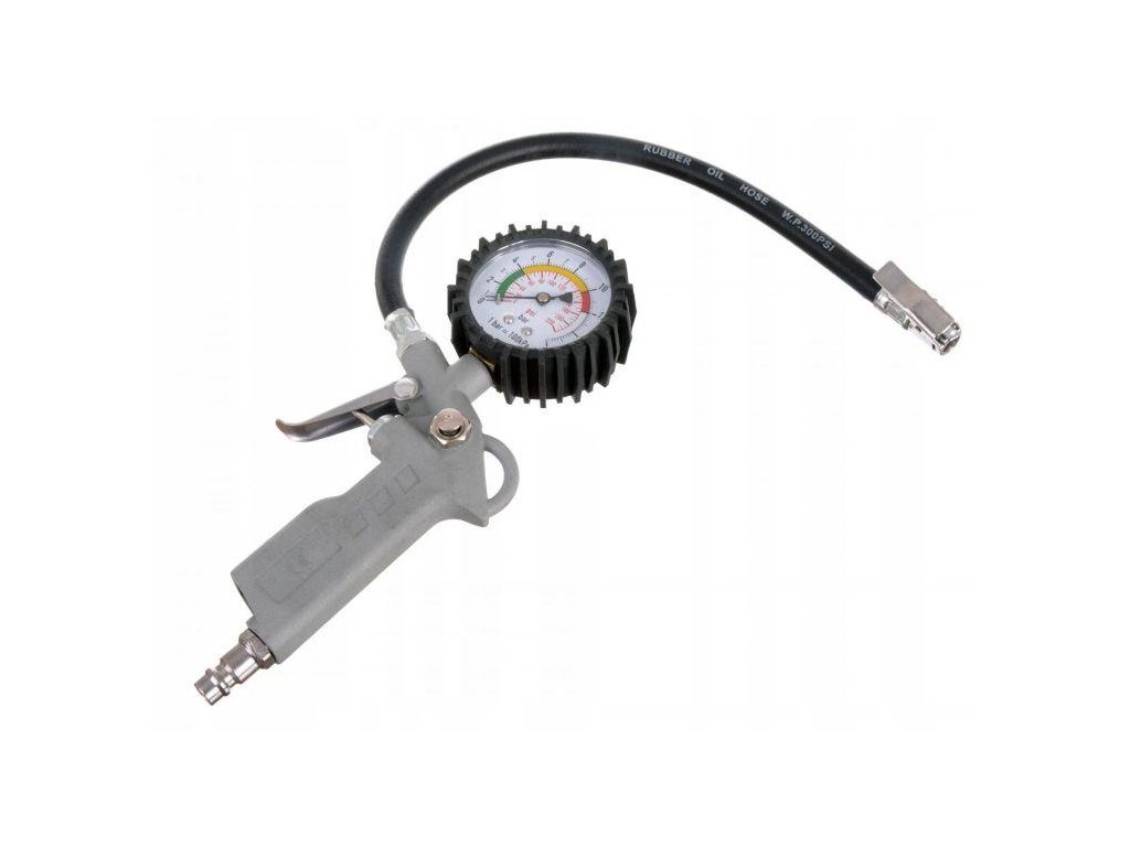 Pnevmatska pištola služi za črpanje koles s standardnimi avtomobilskimi ventili. Opremljena je s standardnim hitrospajalnim priključkom, ki se uporablja v evropskih pnevmatskih orodjih. Barometer je zaščiten s kombinirano gumo, ki ga ščiti pred poškodbami pri neprevidnem položaju.