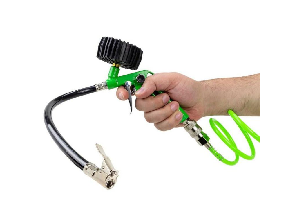 - gumijasto ohišje manometra omogoča nadzor tlaka v kolesih in izvedbo morebitnih del povezanih s dopumpovanjem ali spuščanjem zraka Priložen končnik omogoča črpanje