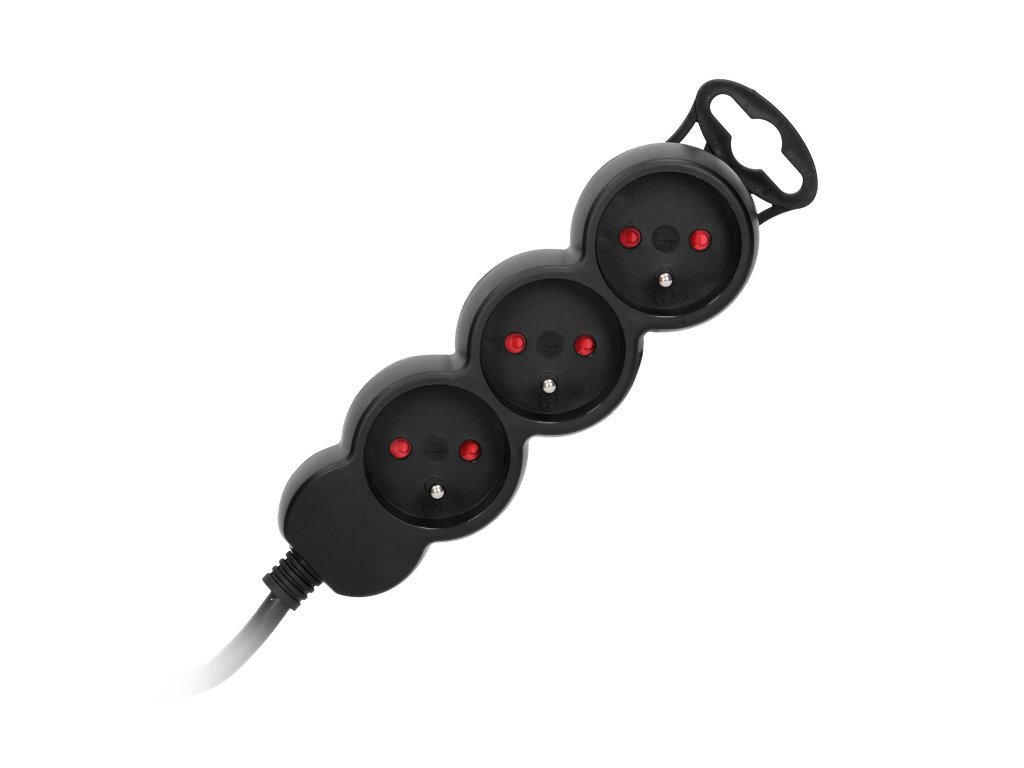 Podaljšek s 3 vtičnicami, 1.5m, črn, 16A