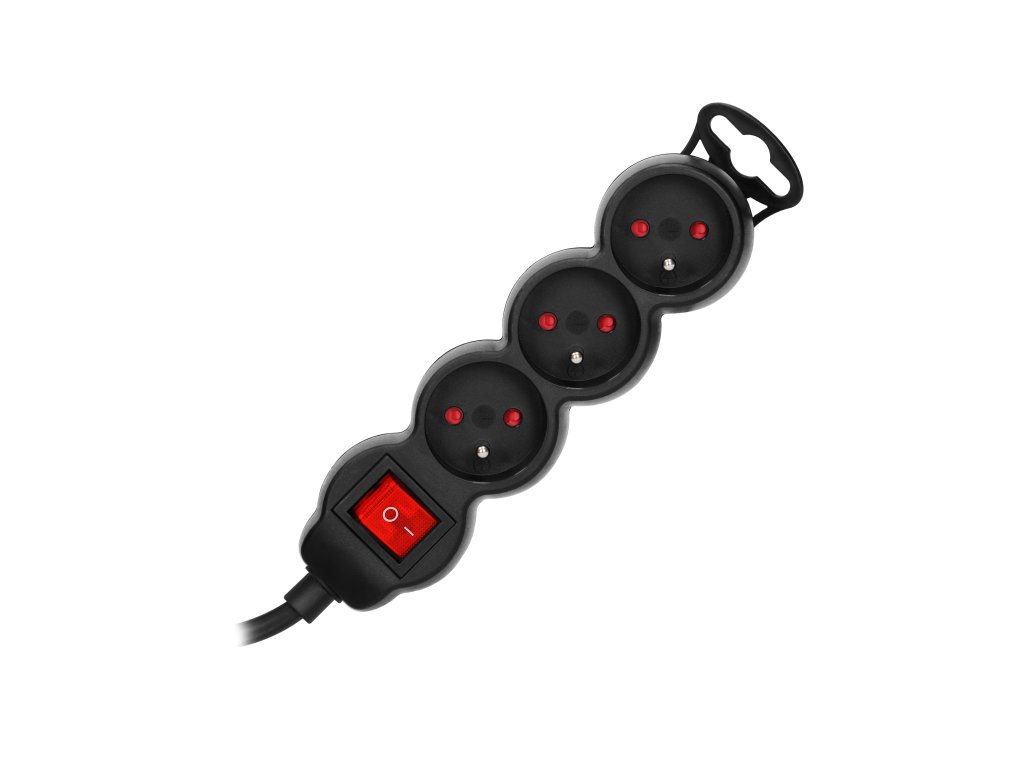 Podaljšek 3x2P+E, ON/OFF, 1.4m, H05VV-F, 3x1mm2, črna