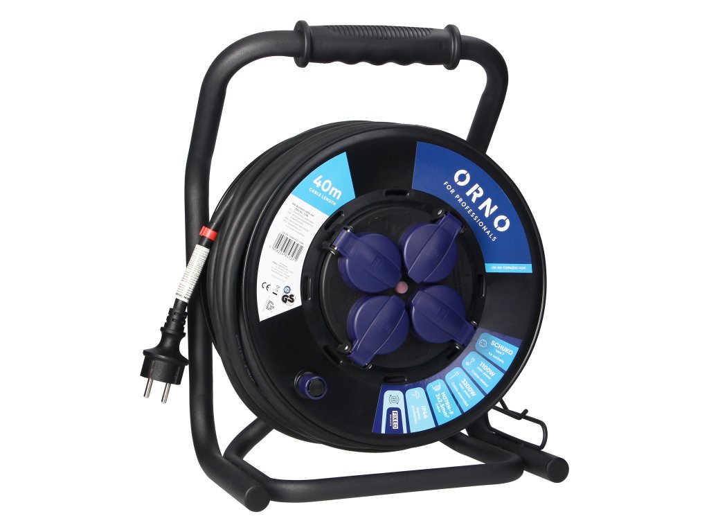 Podaljševalni kabel na kolutu, 40 m, 4 vtičnice IP44