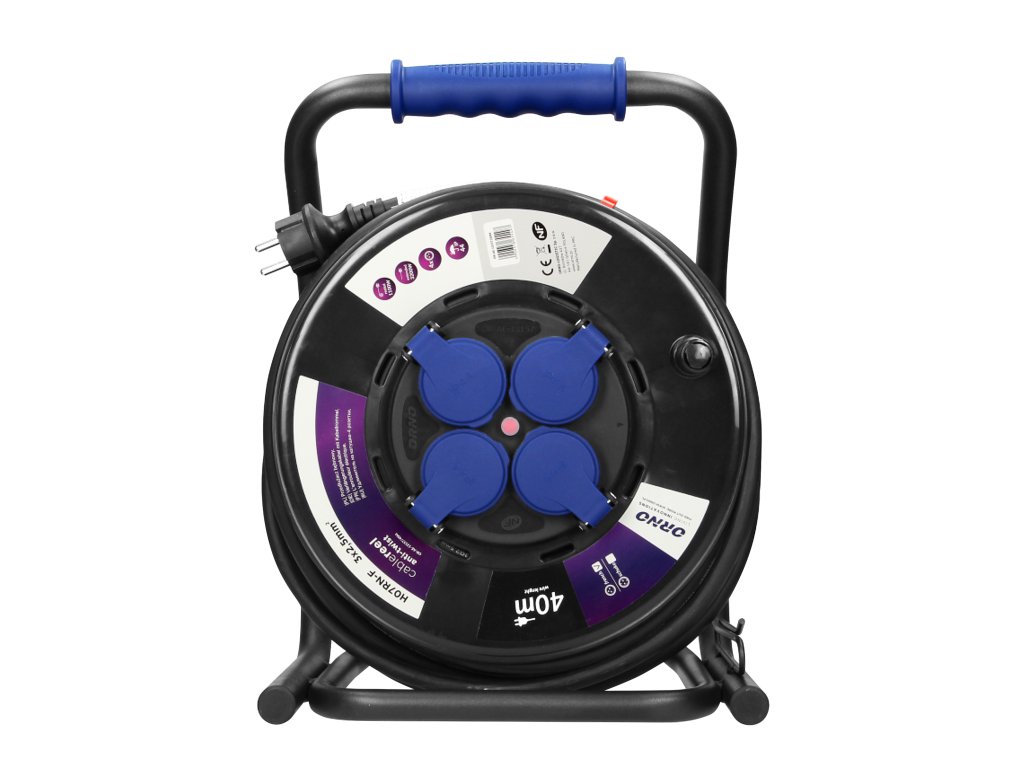 Podaljšek na kolutu 40m, 4 vtičnice, IP44 je zasnovan z mislijo na udobje in varnost uporabnika. Praktična koluta olajša shranjevanje in premikanje kabla, kar je idealno pri spremembi delovnih mest ali pri manipulaciji v različnih delih delovnega ali sprostitvenega prostora.