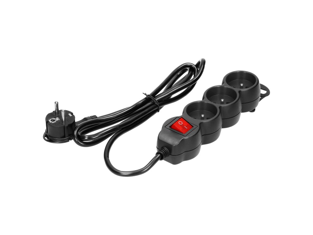 Podaljšek s 3 vtičnicami in stikalom, 5m, črna
