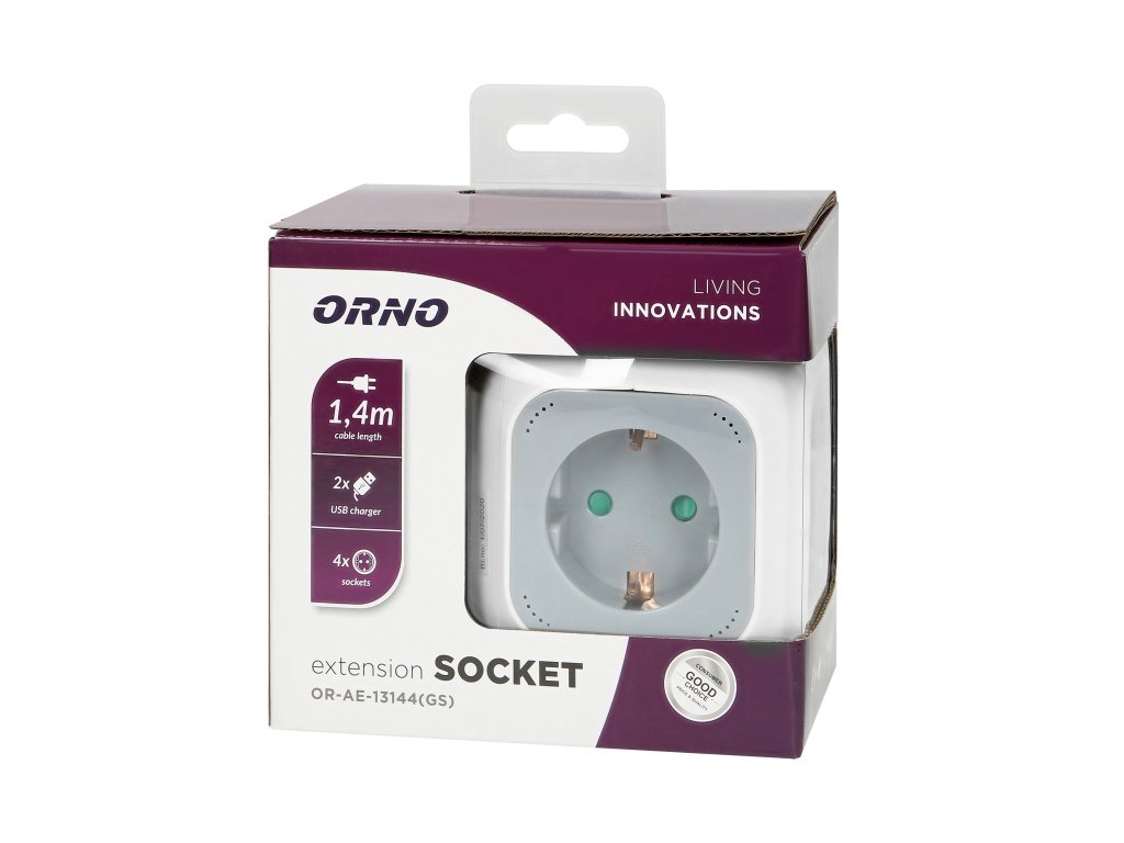 Podaljšek s 4 vtičnicami + 2x USB, 1,4 m
