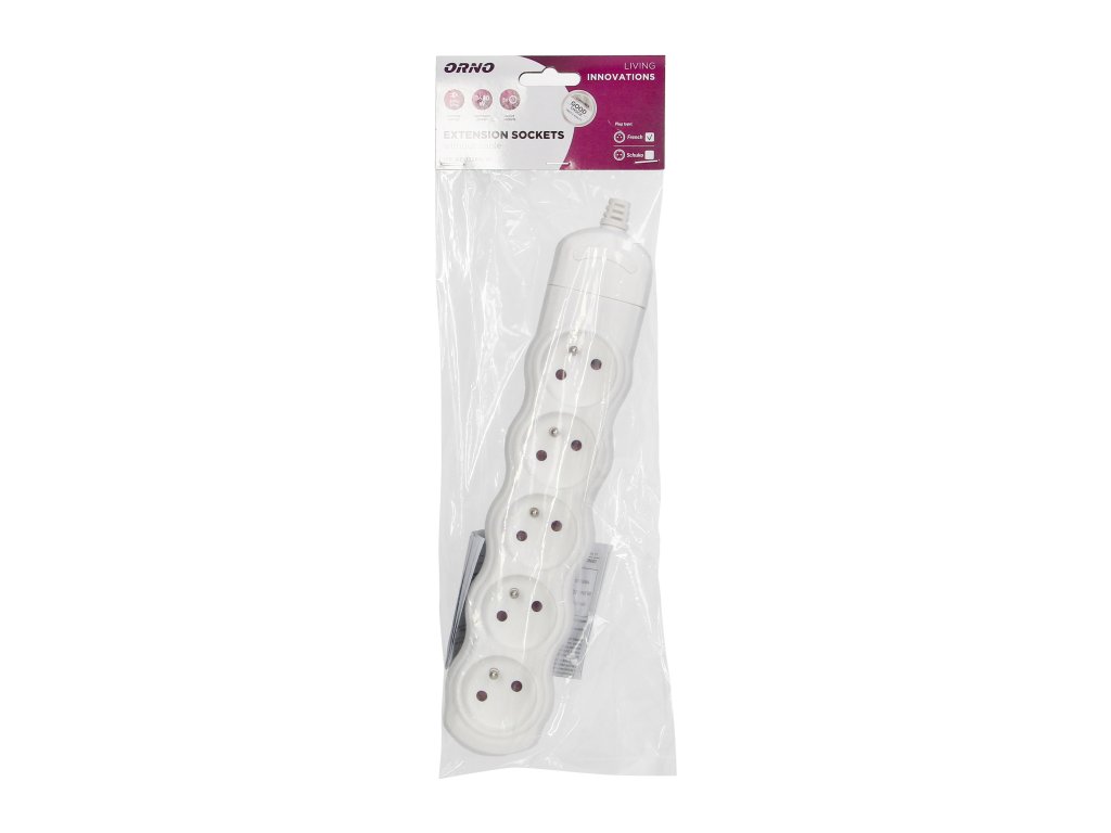 Stavite na udobje in praktičnost s podaljškom z 5 vtičnicami v elegantni beli barvi. Ta kabel je idealen za gospodinjstva in pisarne, kjer je potrebno učinkovito upravljati z več električnimi napravami hkrati.